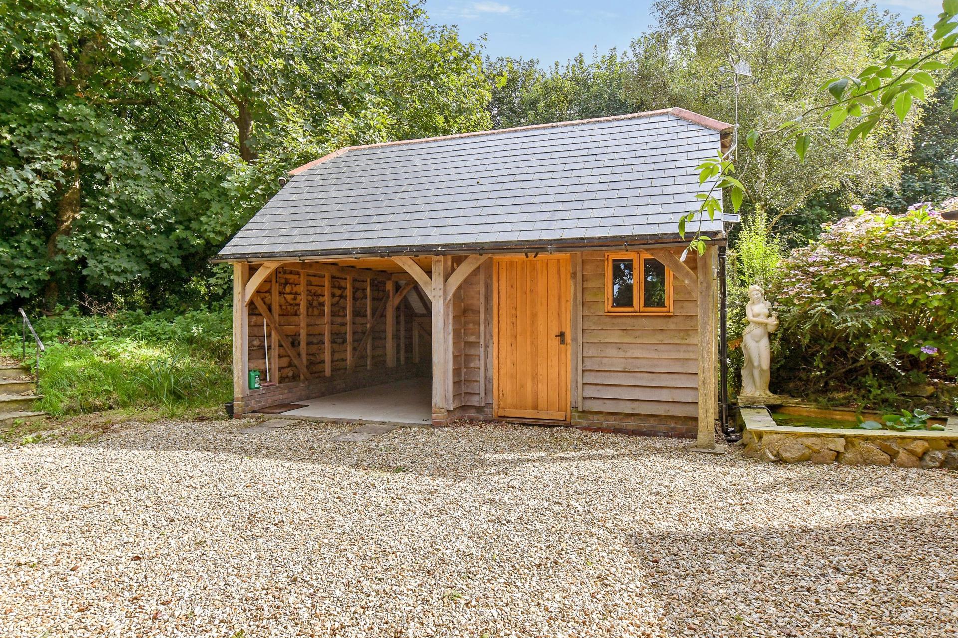 Within its current ownership, a large oak framed car port has been added, complemented by its attractive slate roof, providing parking for vehicles to one side, and a substantial workshop to the other, provided with power and light. The property is also fitted with solar thermal panels for heating the water, benefiting from the property’s southerly aspect.