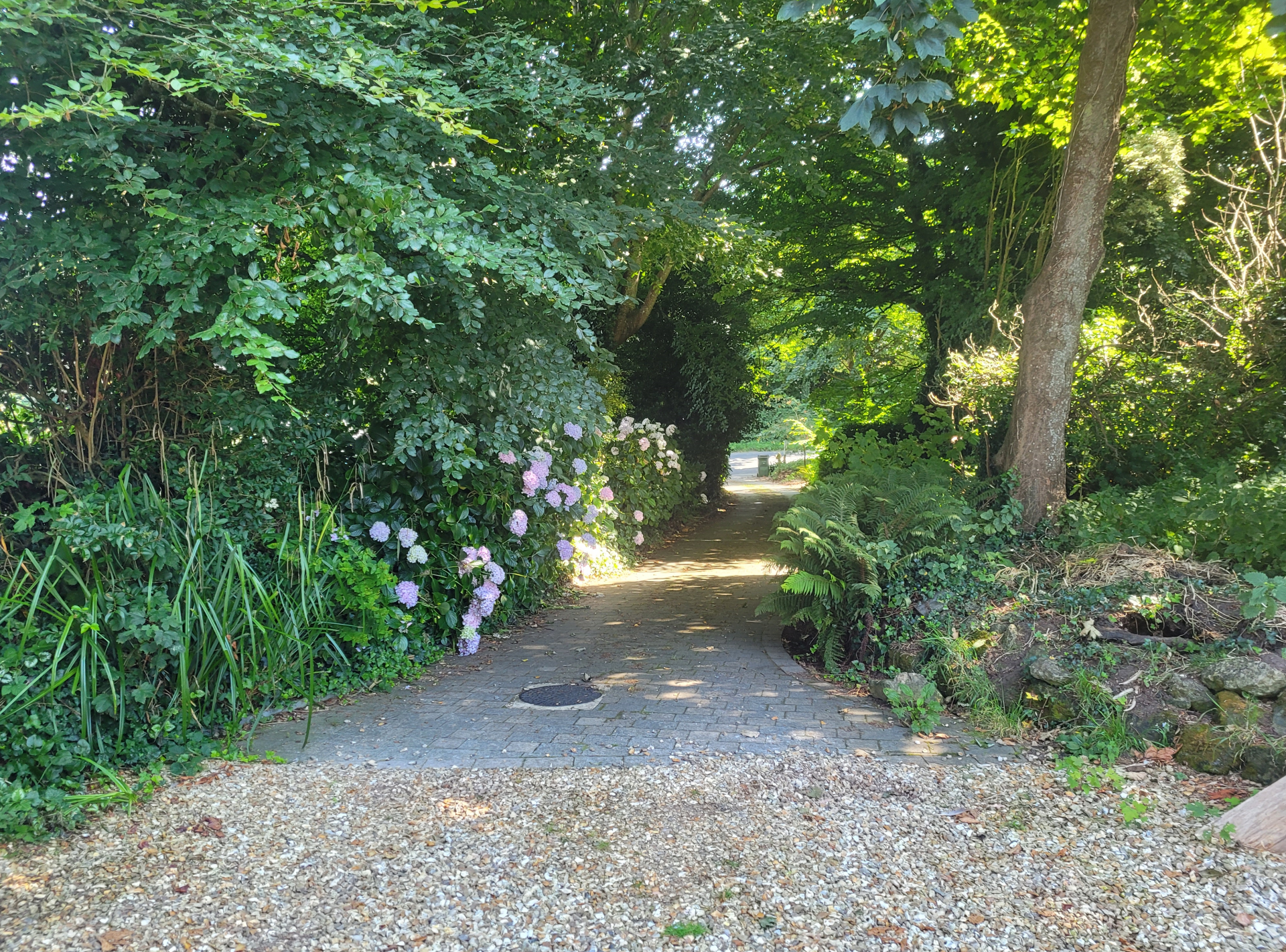 The grounds of the home wrap around the property, with a treelined driveway, screening it from the road, and lawned gardens with mature shrubs and plants providing a tranquil private setting in which to enjoy this enviable location.