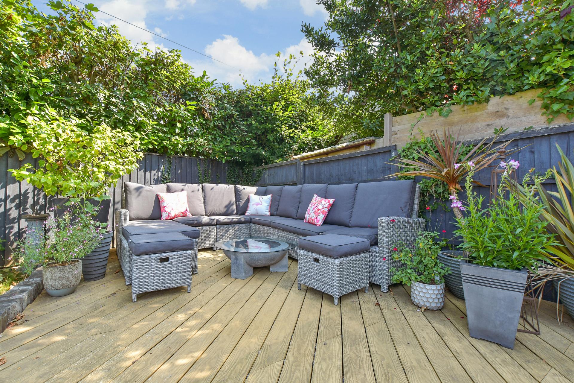 The rear garden has been thoughtfully designed for relaxation and entertainment, with a gravel terrace, lawn, and separate decked area complete with outdoor bar and food prep zone. Surrounded by solid fencing, the garden offers total seclusion and security.