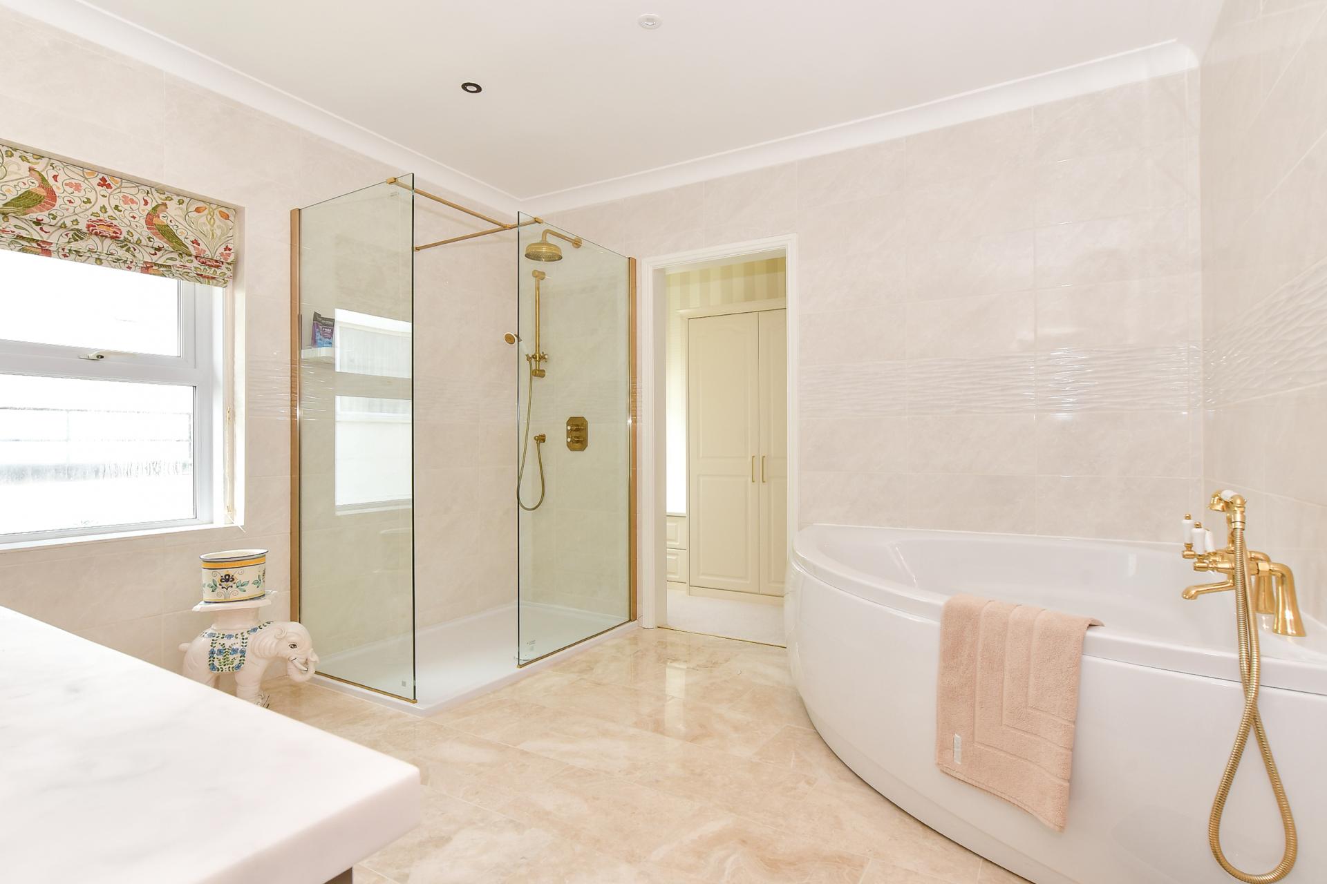 Ascending the original Victorian staircase, the first floor continues the home’s narrative of understated opulence. The principal suite is a sanctuary of luxury, complete with a vast dressing room, his and hers en-suites, and private balcony from which to savour endless views over Shanklin Bay. Two further sumptuous double bedrooms, each with their own en-suites and one with a dedicated dressing room, provide generous, beautifully appointed accommodation. An additional en-suite bedroom and a flexible space, both at first-fix stage, await completion to create further bespoke living areas, games rooms, or a private studio.