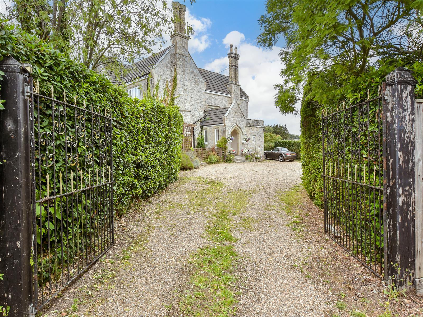 - Beautiful wrap-around gardens with greenhouse and gated driveway