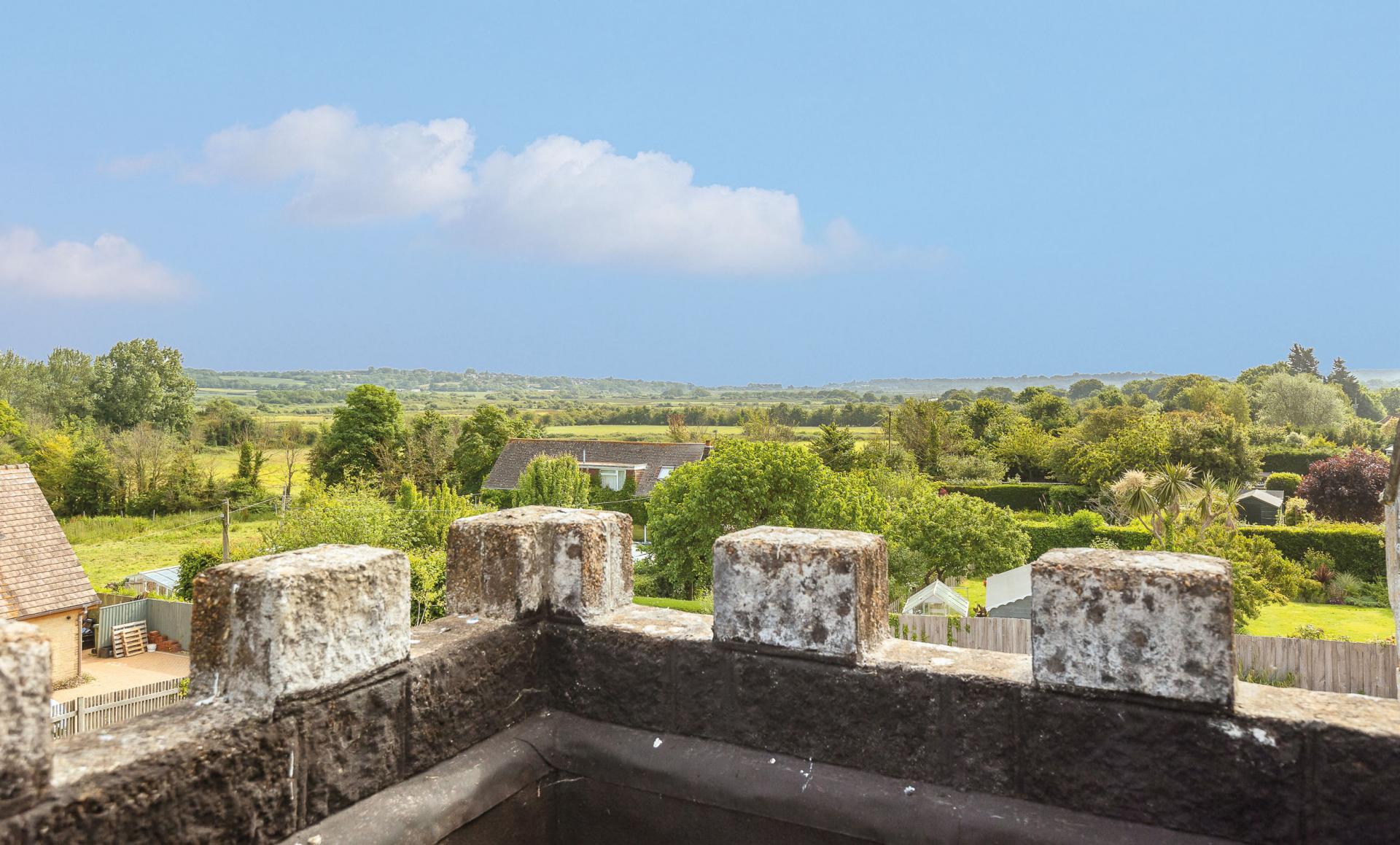On the upper floors, the home continues to impress with large, light-filled bedrooms, each full of character. The principal suite includes a Jack and Jill en-suite, while other rooms are currently styled as a library and office space, offering flexibility to suit any lifestyle. The top floor reveals a delightful turret balcony with panoramic countryside views, an idyllic retreat for peaceful reflection.