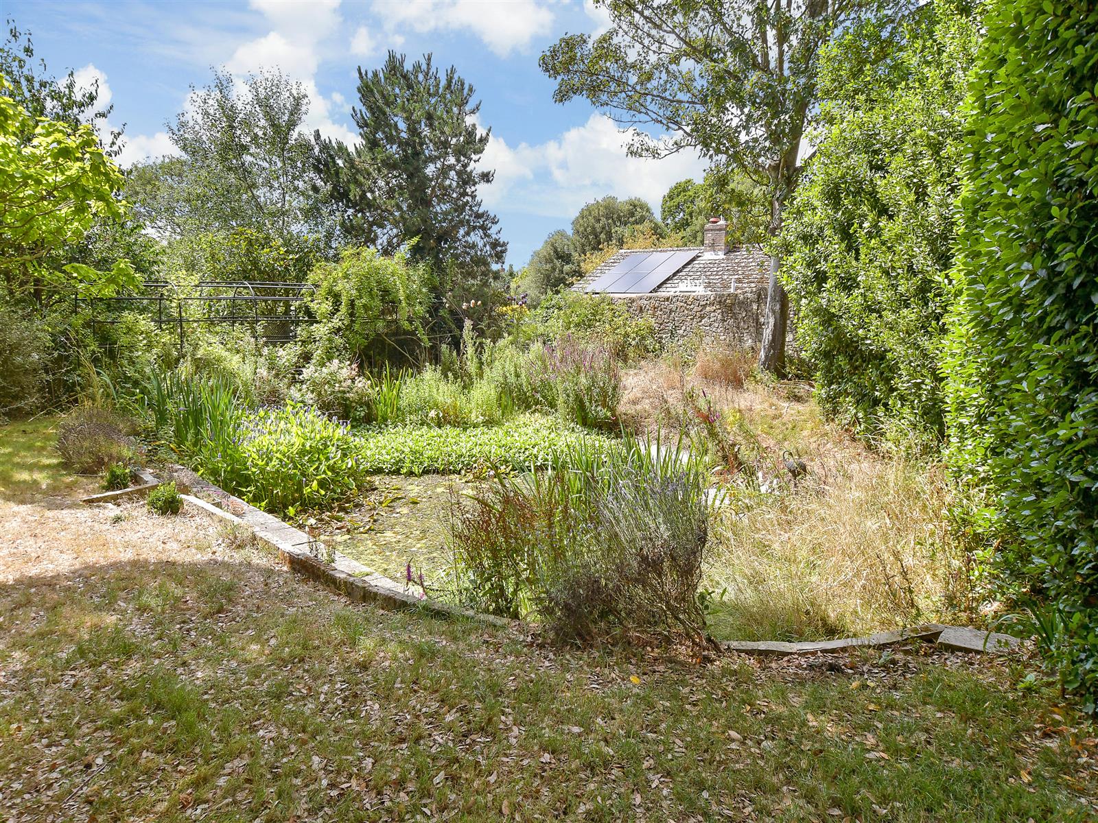 The gardens are truly enchanting, with formal lawns, well-stocked borders, an ornamental pond, and a rose-clad arch creating a serene retreat. A wide stone terrace lines the southern elevation, perfect for outdoor entertaining. The property also includes a double garage and a private pedestrian gate leading to the adjoining churchyard and village amenities.