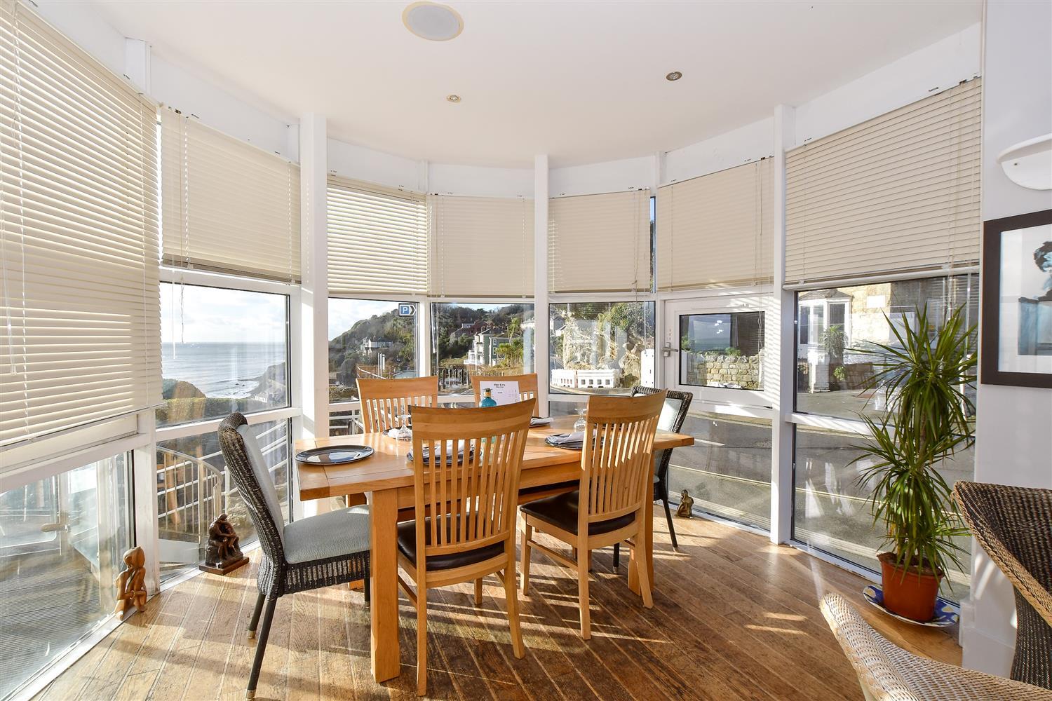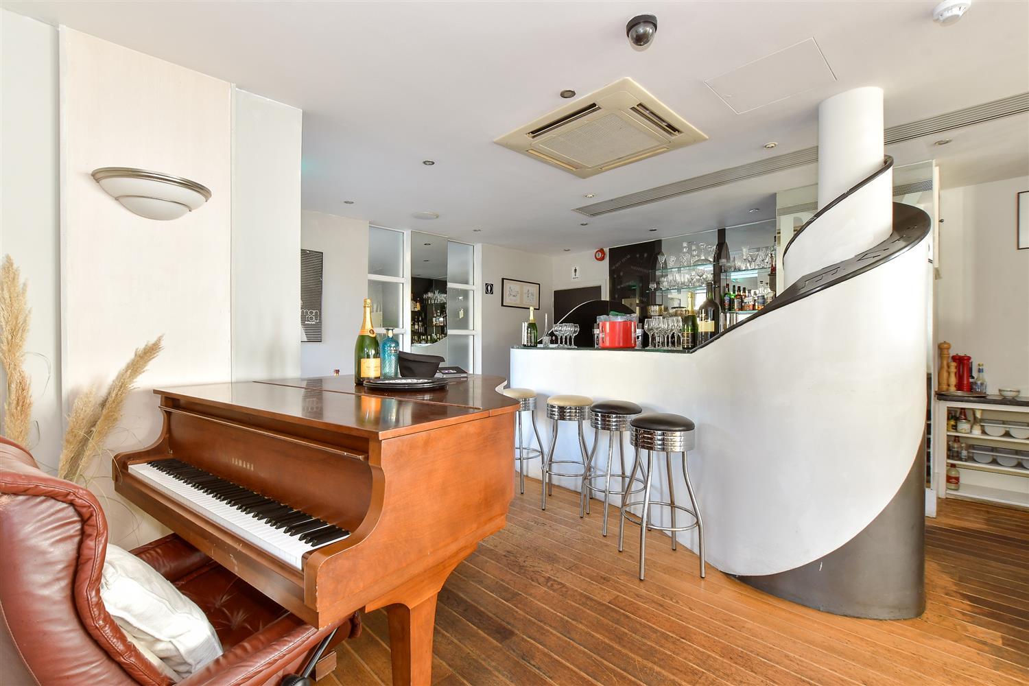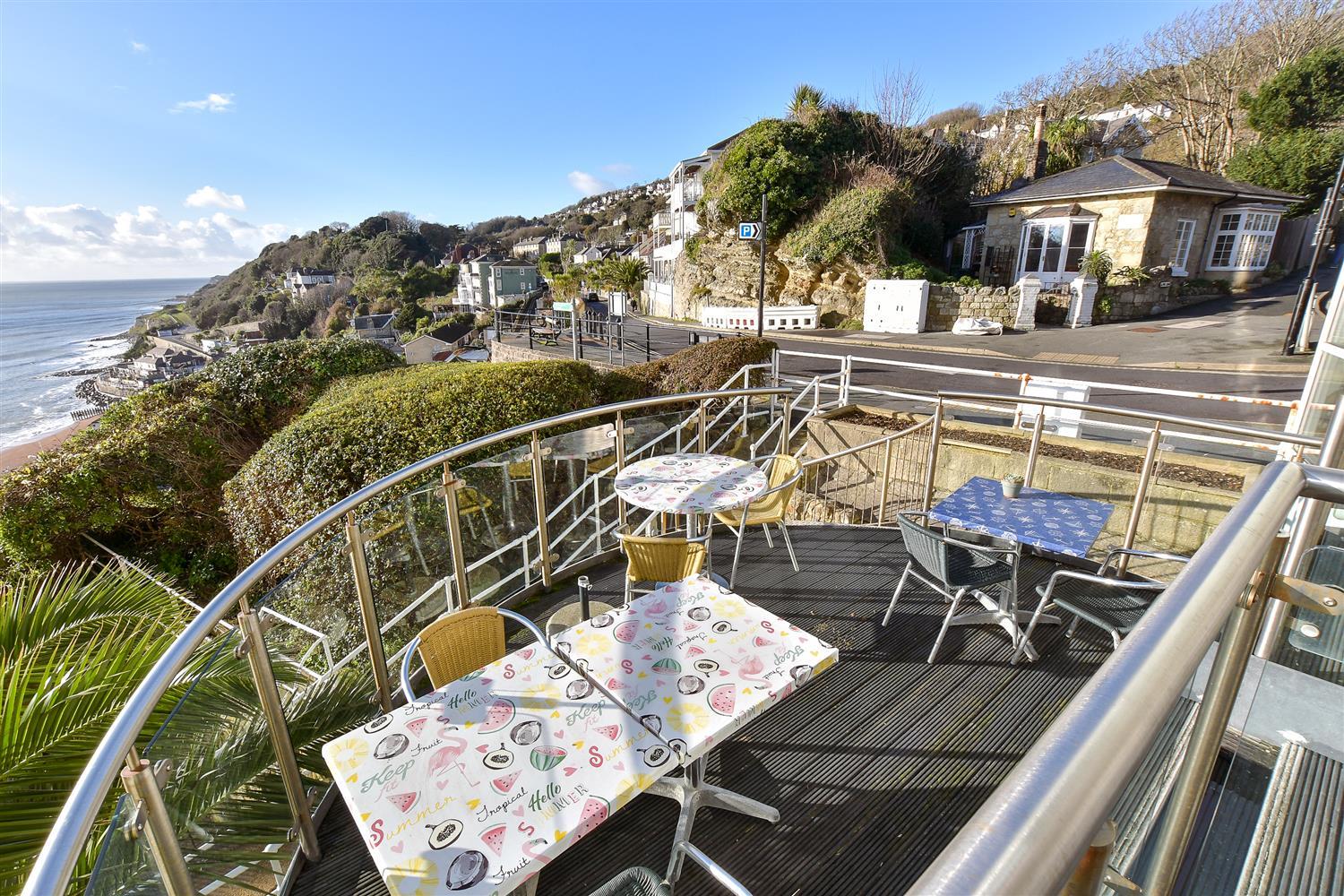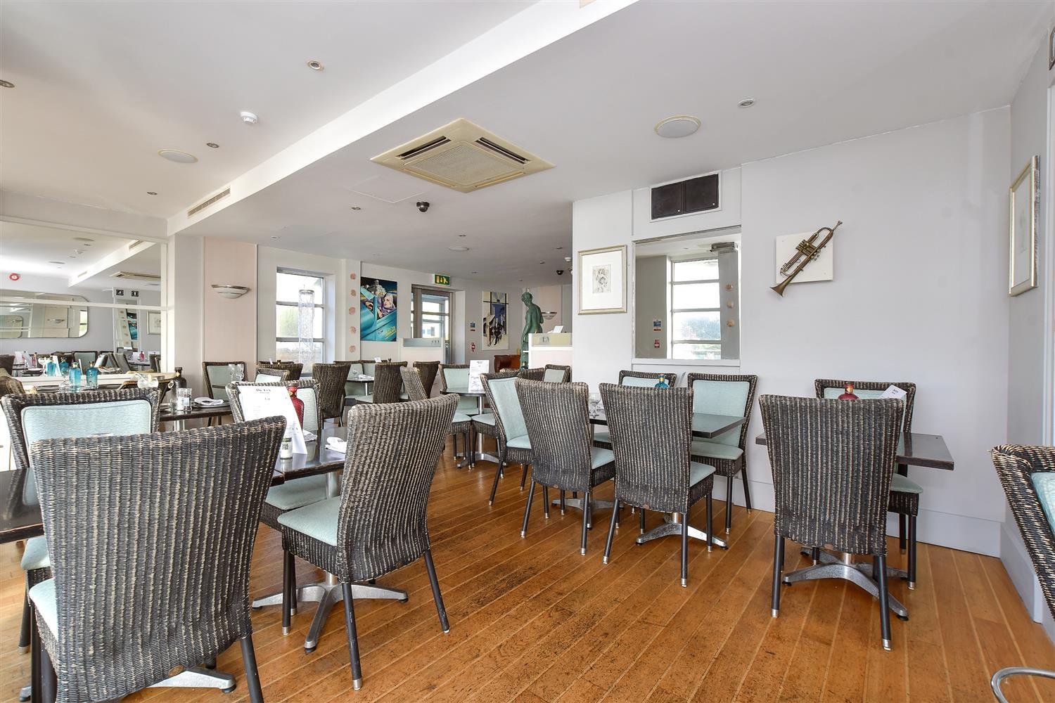 Located on the ground floor of a modern art deco-inspired building, this commercial premises currently offers fine Italian dining with stunning views of Ventnor Bay. Decorated in a 1930s style, it features a bar, commercial kitchen, indoor/outdoor seating, and potential for events like weddings, making it a versatile and popular venue.