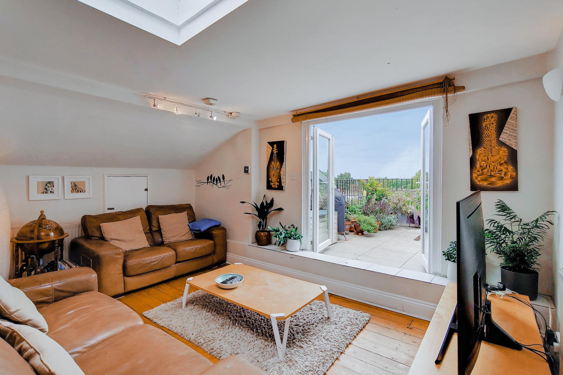 On the top floor of the building is a superb reception/living room offering plenty of natural light from the skylight and furthermore there is a pair of French doors opening onto the private roof terrace.