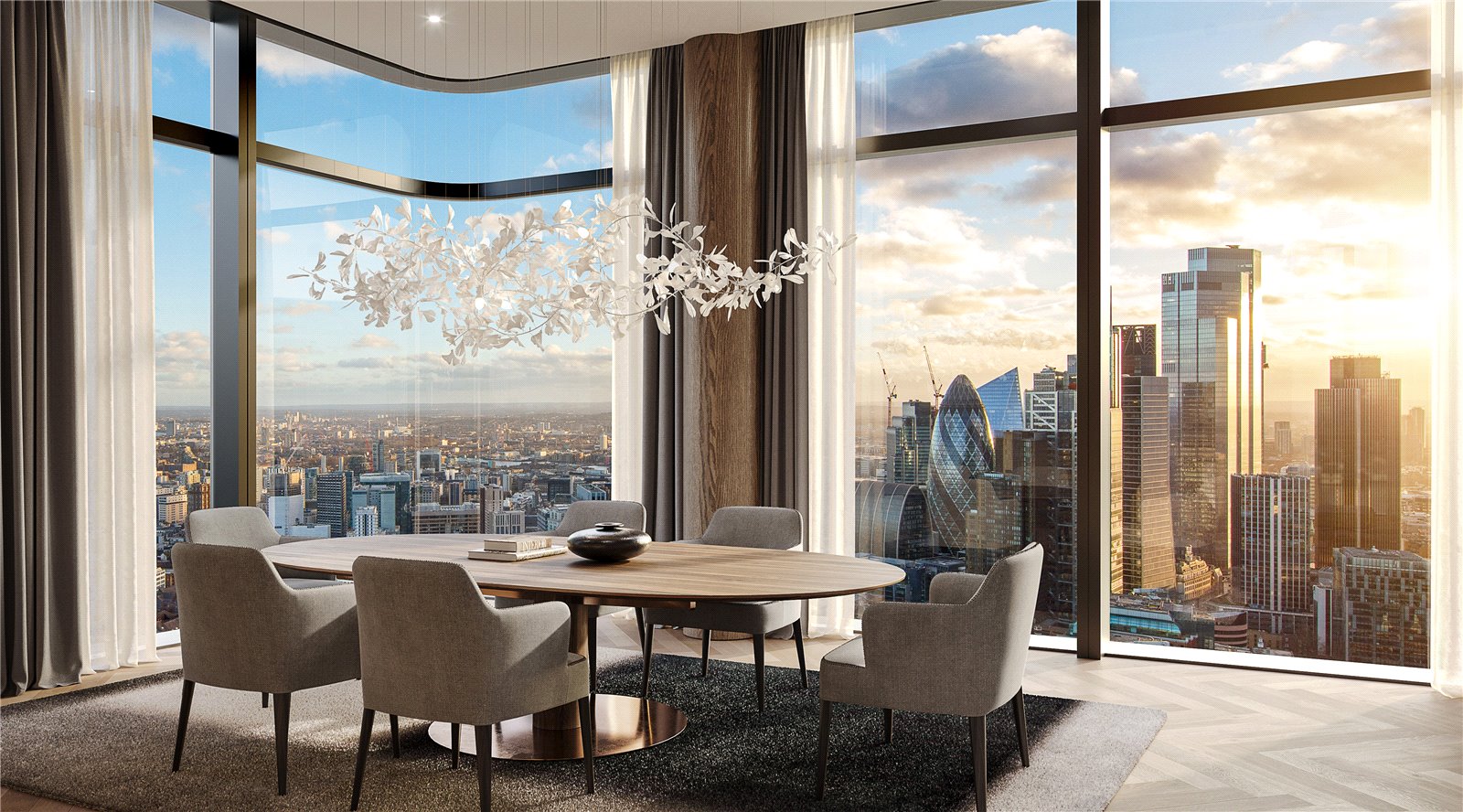 Nestled within moments of the City of London, this penthouse is more than a homeits a statement of prestige and luxury in the heart of one of the worlds greatest cities. From the ArcelorMittal Orbit at the Olympic Park to the distant hills of Surrey, this residence offers an unrivaled perspective on Londons skyline and the ultimate in sky-high living.