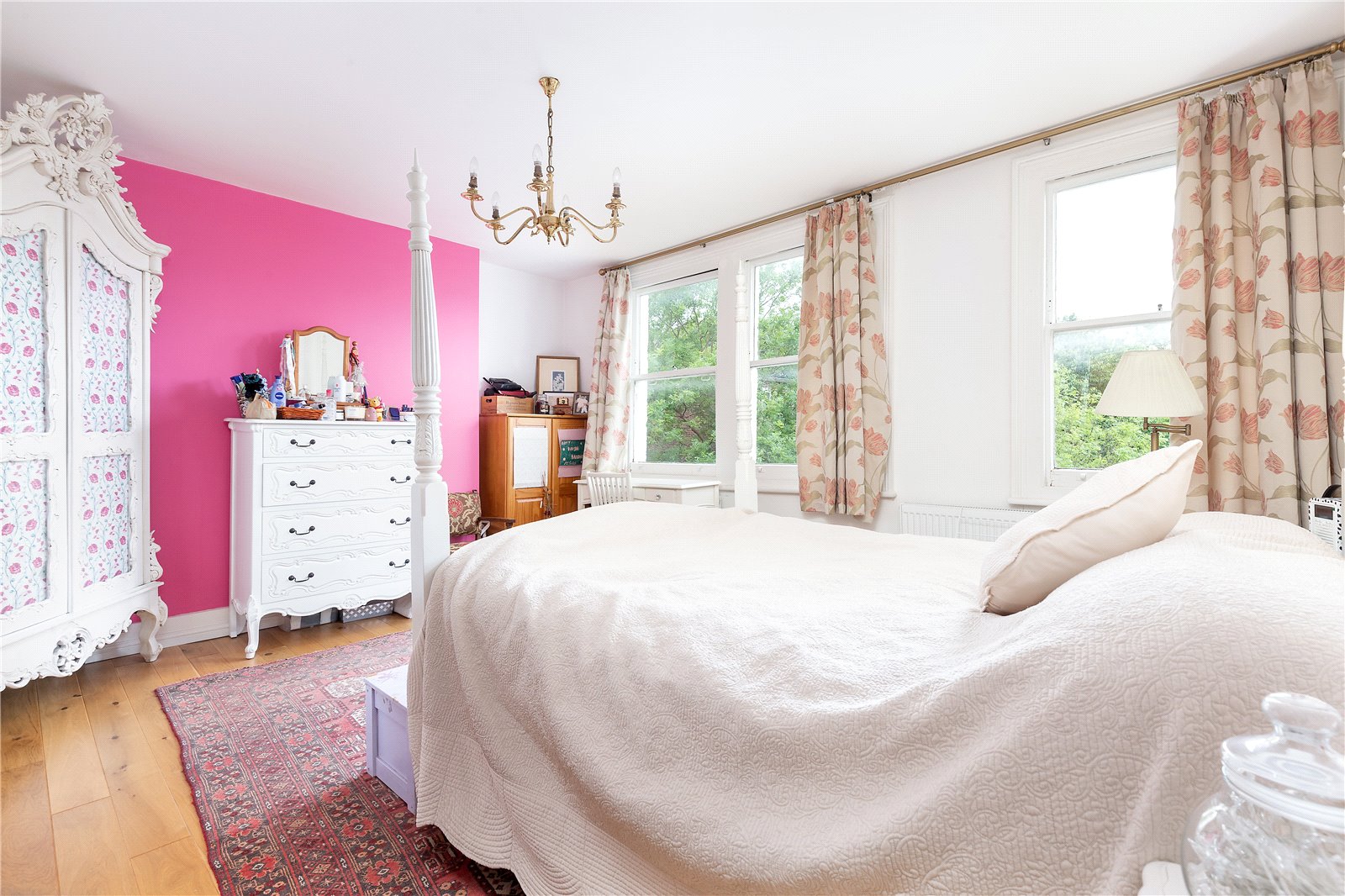 This five bedroom Victorian terraced house is set over five floors and boasts a tremendously proportioned kitchen family room on the lower level, an eye catching double reception room featuring an original fireplace, a bay window to the front, patio door leading to a south facing terrace and high ceilings accompanied by a mixture of characterful cornices, replica Victorian style moulding and a reclaimed ceiling rose. Wooden flooring adorns the ground floor, stairs and landings as well as other characterful features one would expect with a house from this period.