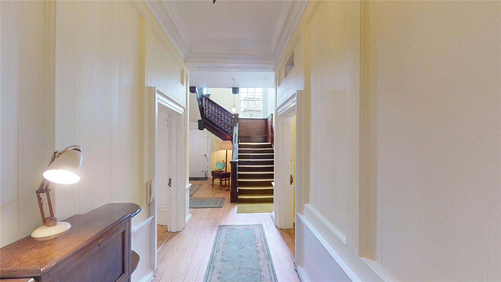 Entry to the property is via an original wrought iron gate which encloses a secluded garden. Portland stone step take you up to the impressive portico entrance. The front door opens onto the impressive entrance hall with classical Georgian staircase that winds its way up through the entire house. Several well-proportioned reception rooms lead off this hallway, including a double reception with dual aspect offering an abundance of natural light and views to both the front and rear productive cottage gardens.