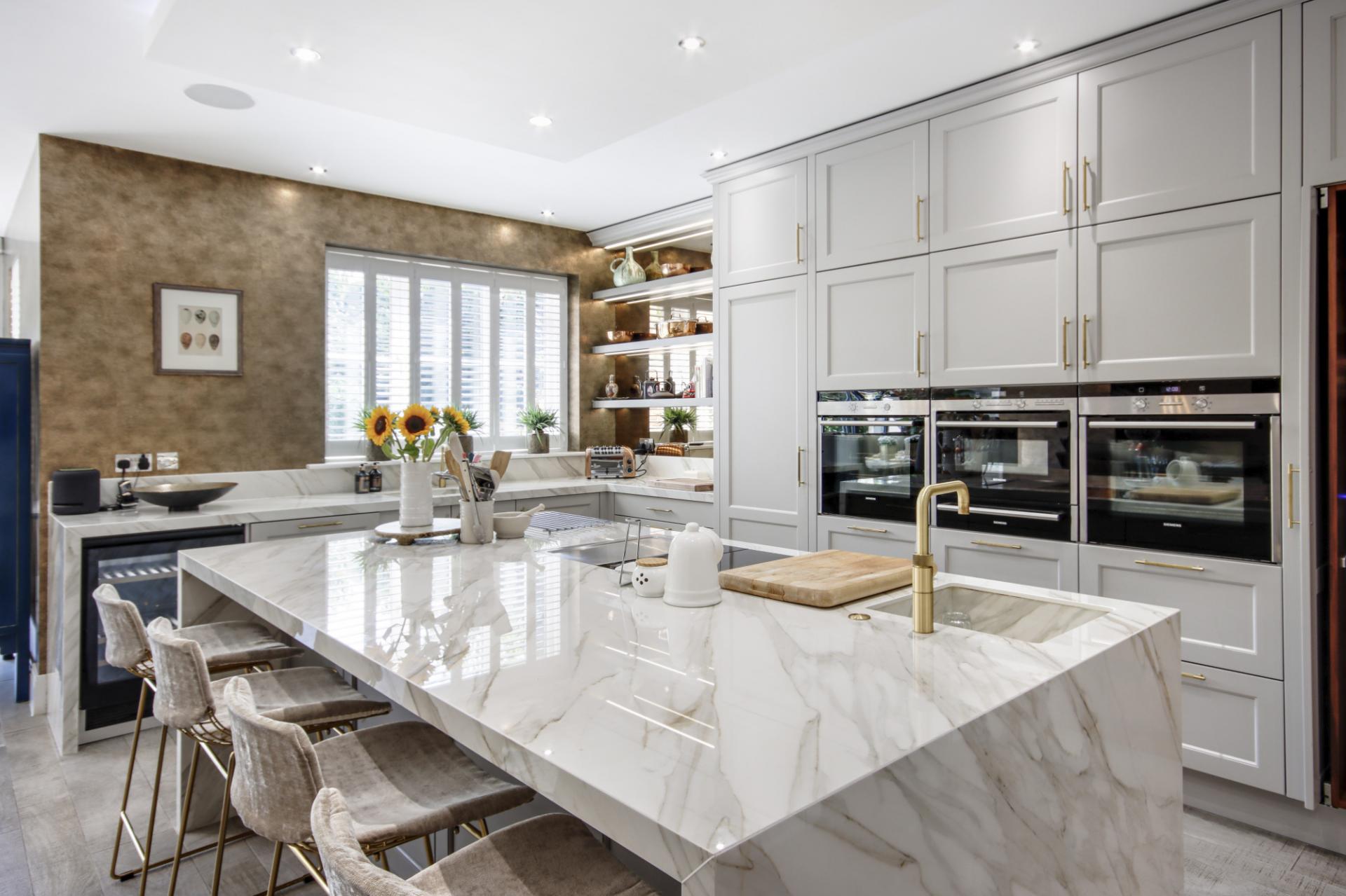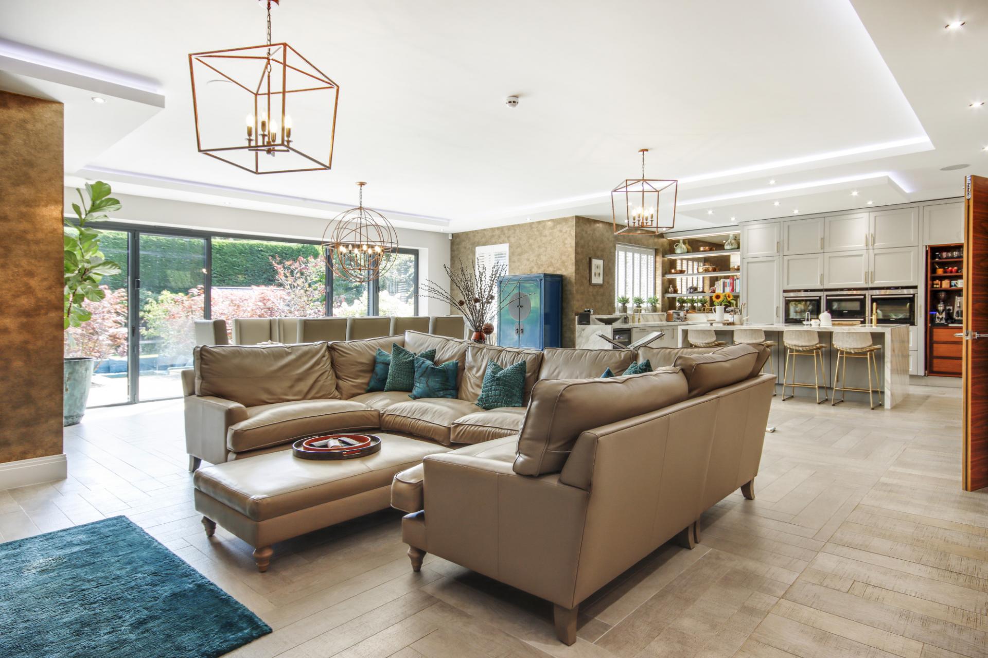 Substantial and impressive with five bedrooms, three dressing rooms, five luxurious bath/shower rooms, balcony to the principle bedroom, superb open-plan kitchen/dining/drawing room with bi-folding doors leading to the rear sun terrace, a study to the front aspect, a utility room leading to the boot room with a dog washing station. To the basement is a fabulous cinema room with bar, a wine store, gymnasium with shower facilities, sauna, steam room and games room.