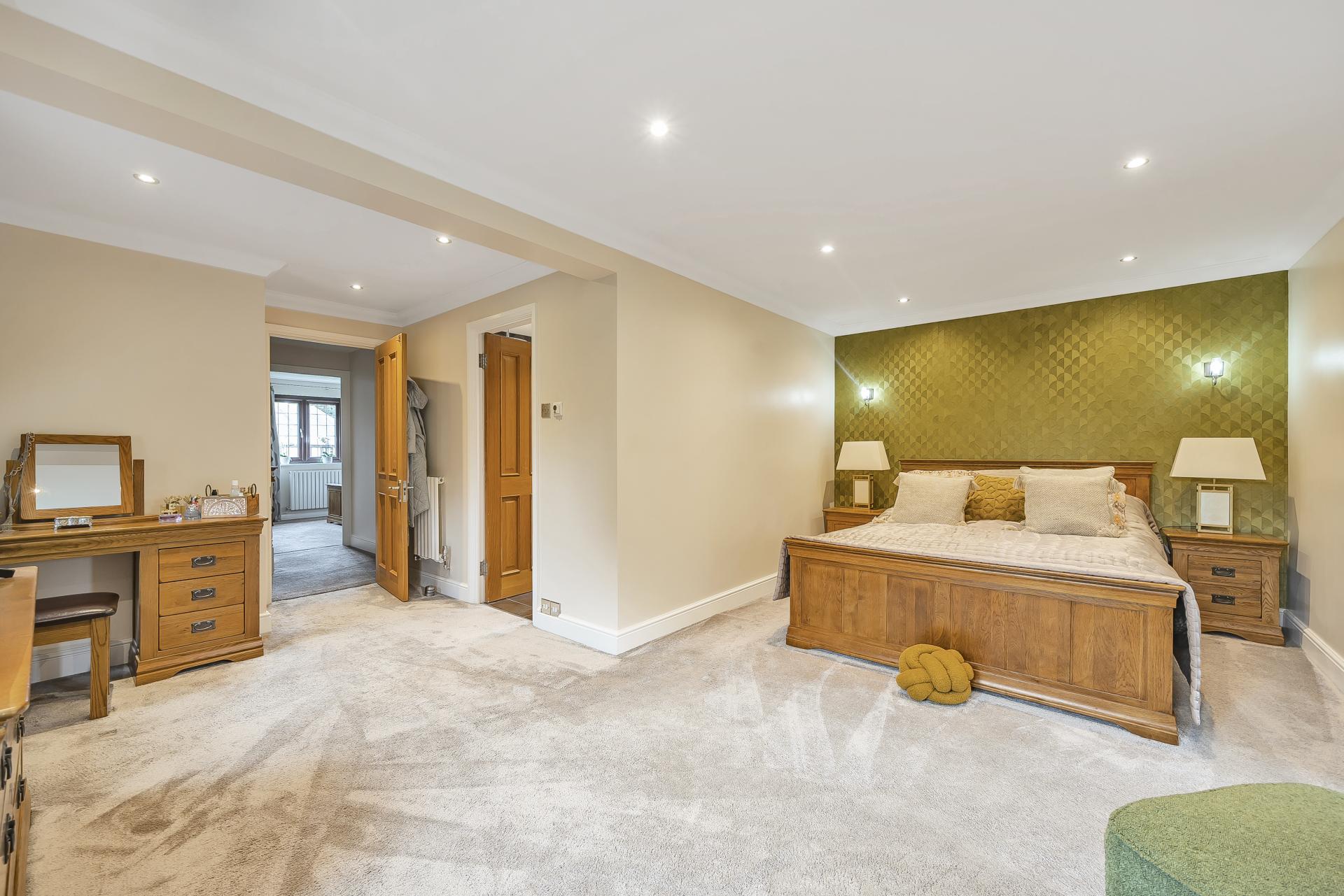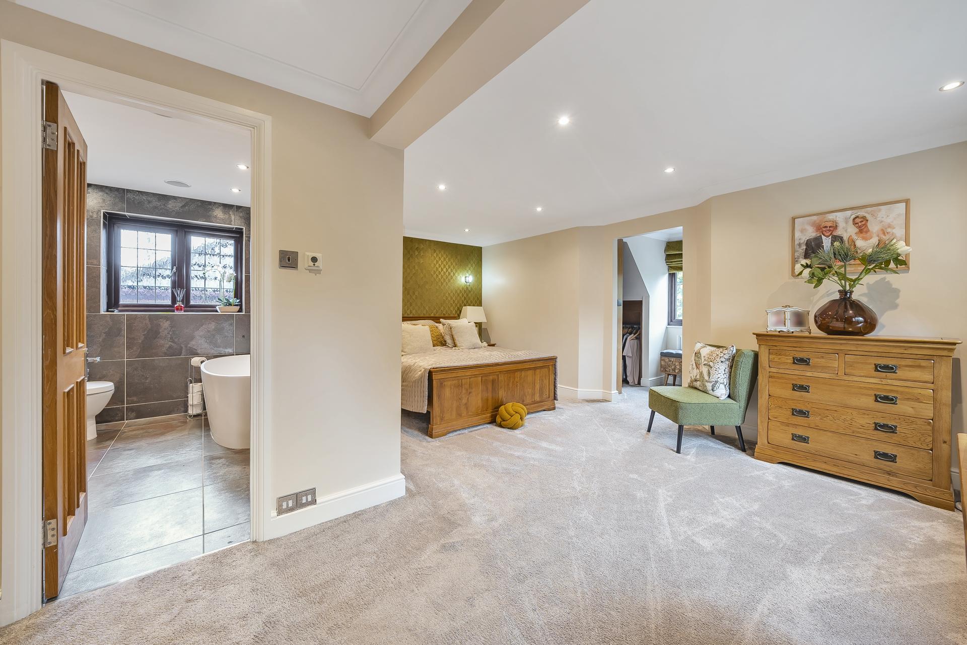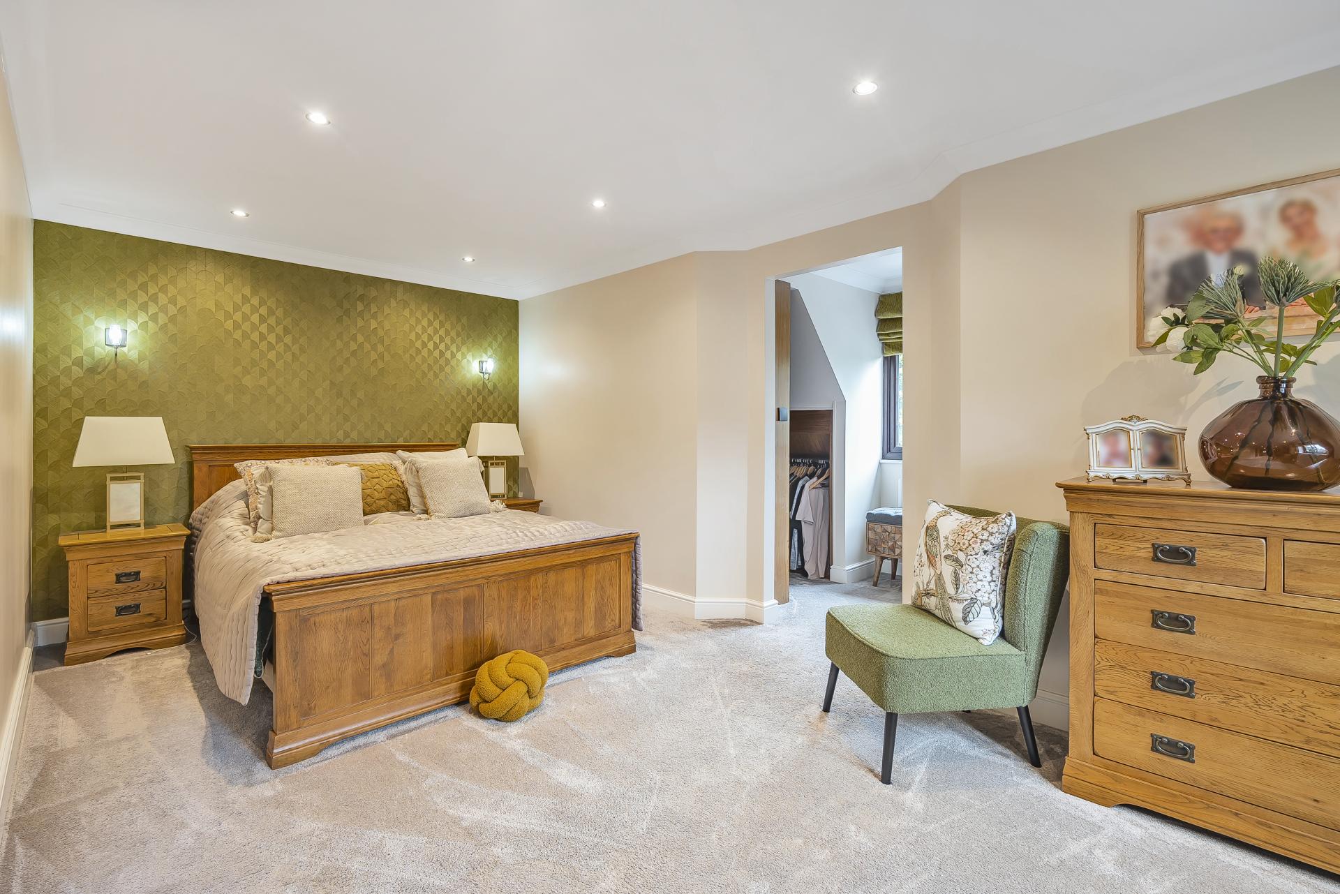 To the first floor is a principal suite which includes a bath/shower room, a tile TV and a walk-in his and hers wardrobes. There are four further bedrooms and a luxury family bath/shower room. To the top floor are two more double bedrooms with modern en-suites and a shared dressing area with large storage cupboard.