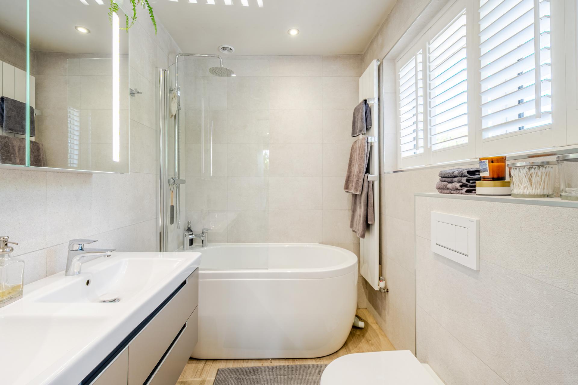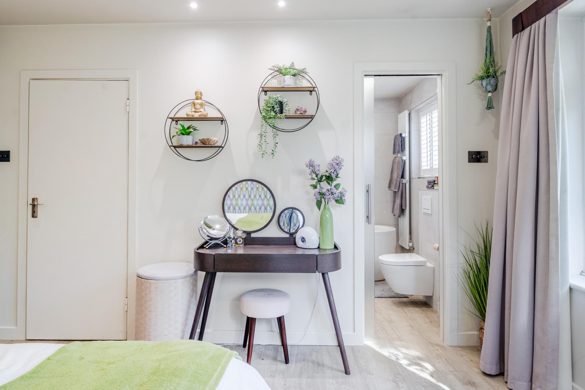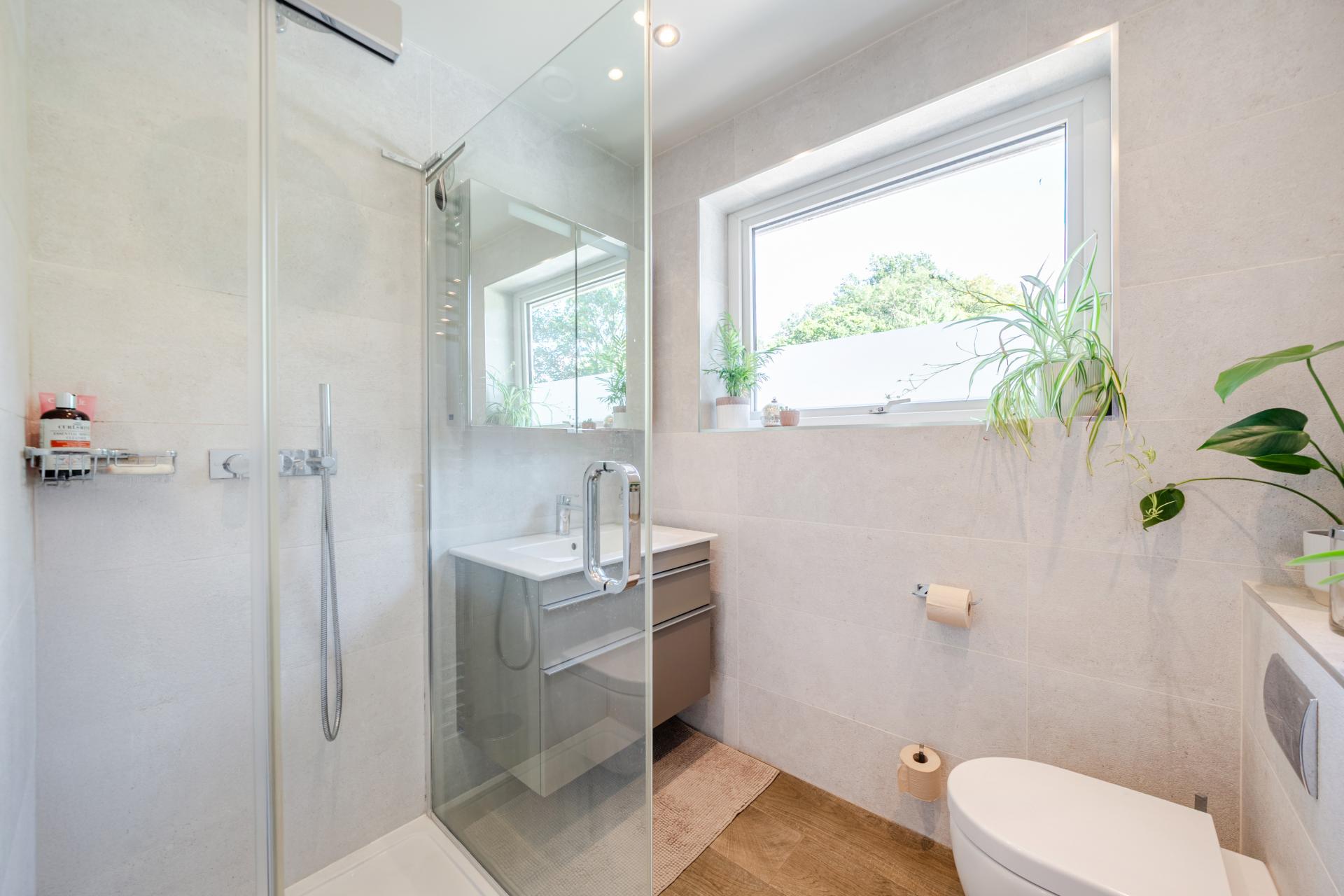 The rear garden is a true highlight, with a large decked entertaining area, mature planting, and a versatile detached cabin. Fully insulated and fitted with underfloor heating, the cabin is currently arranged as a Pilates studio but could equally serve as a home office or gym.