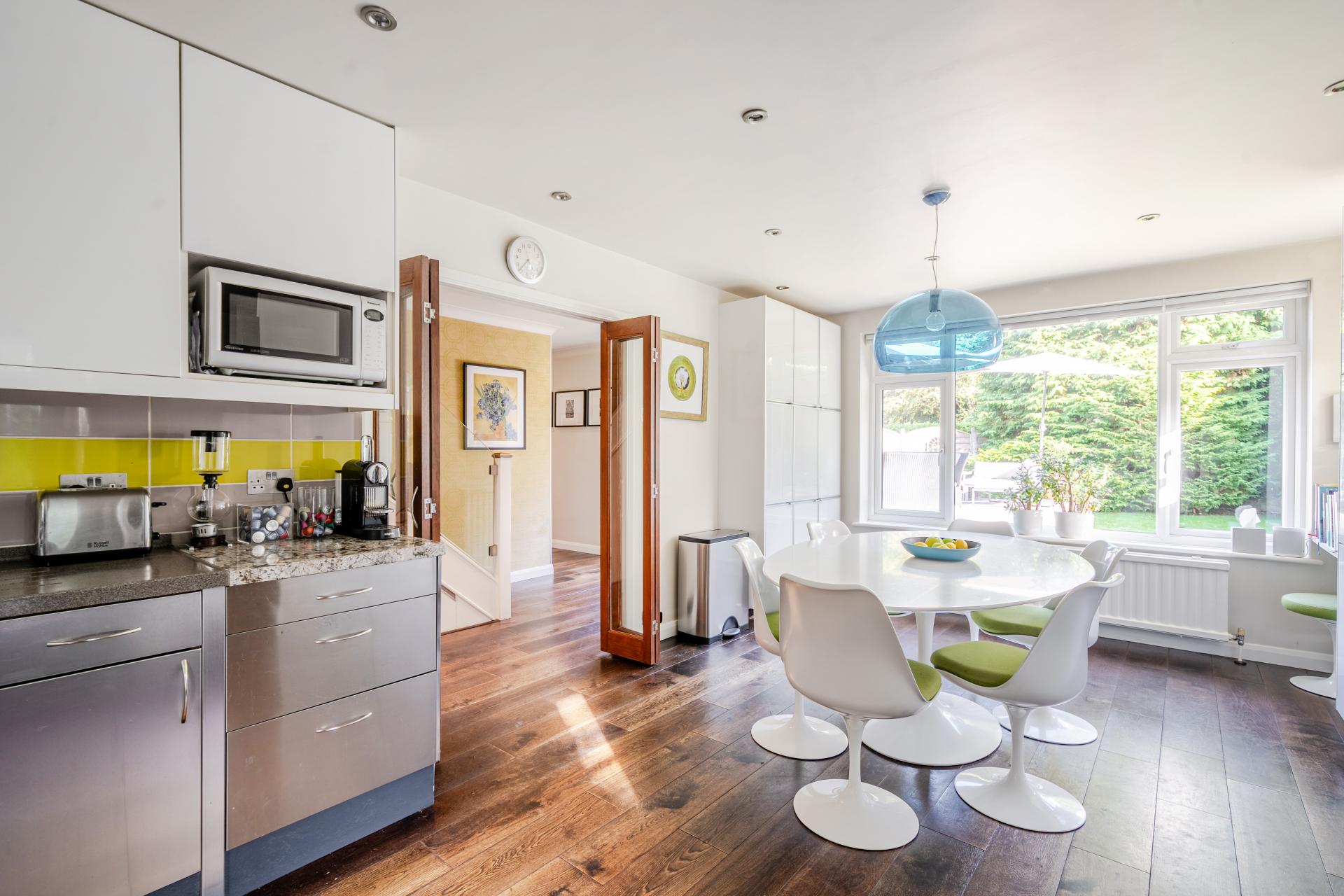 This detached four-bedroom family home is nestled in a highly sought-after location in Chipstead, set back in a private semi-rural position opposite the open green space of Chipstead Meads.