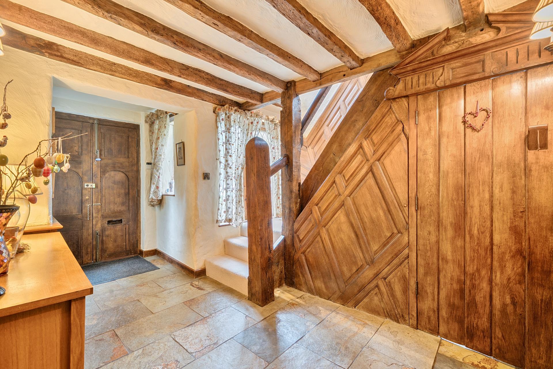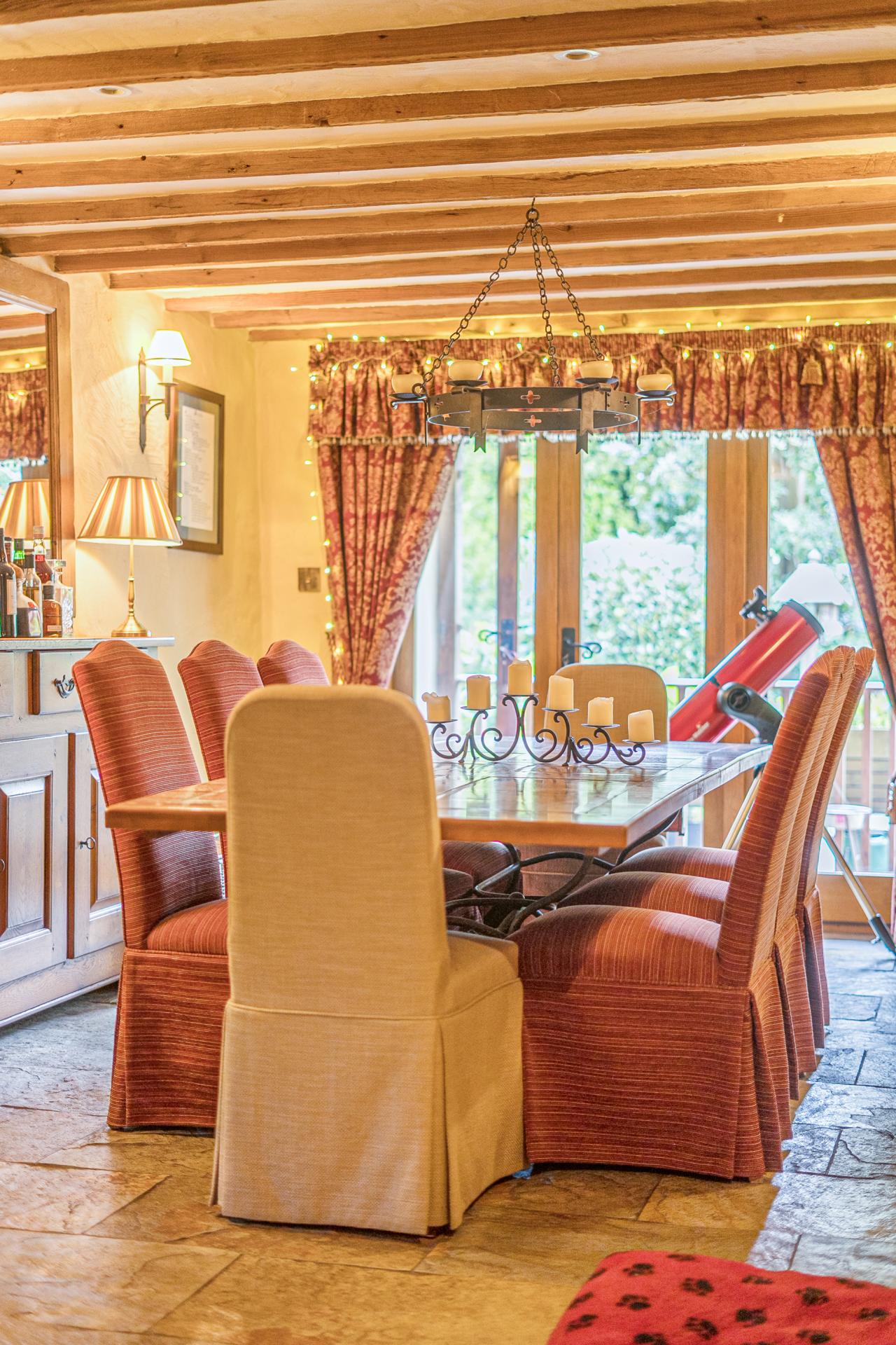 The main house is pretty and there is charming period features and character throughout the property, including beamed ceilings and walls, flagstone floors and luxurious fireplaces.