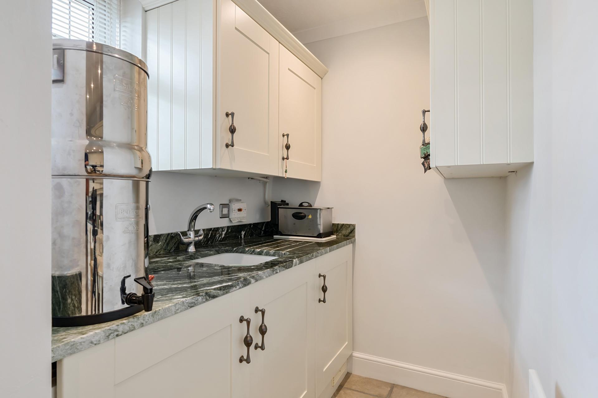 The adaptable accommodation is laid out across two floors and includes an entrance hall with a range of storage cupboards, a spacious, double aspect sitting room with a feature fireplace and patio doors opening to the rear garden, the perfect spot to admire the beautiful garden. Double doors from the sitting room leads through to the double aspect dining room which is also accessible from the entrance hall. There is a study to the front aspect and a fitted kitchen/breakfast room with an extensive range of integrated appliances, fitted units and plenty of worktop space. Also to the ground floor is a utility room and a cloakroom.