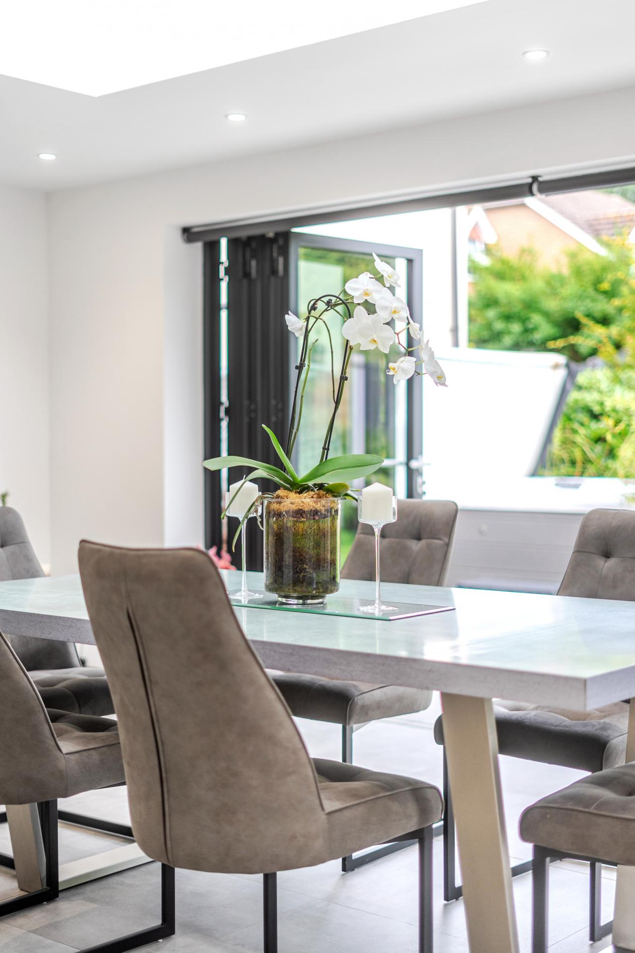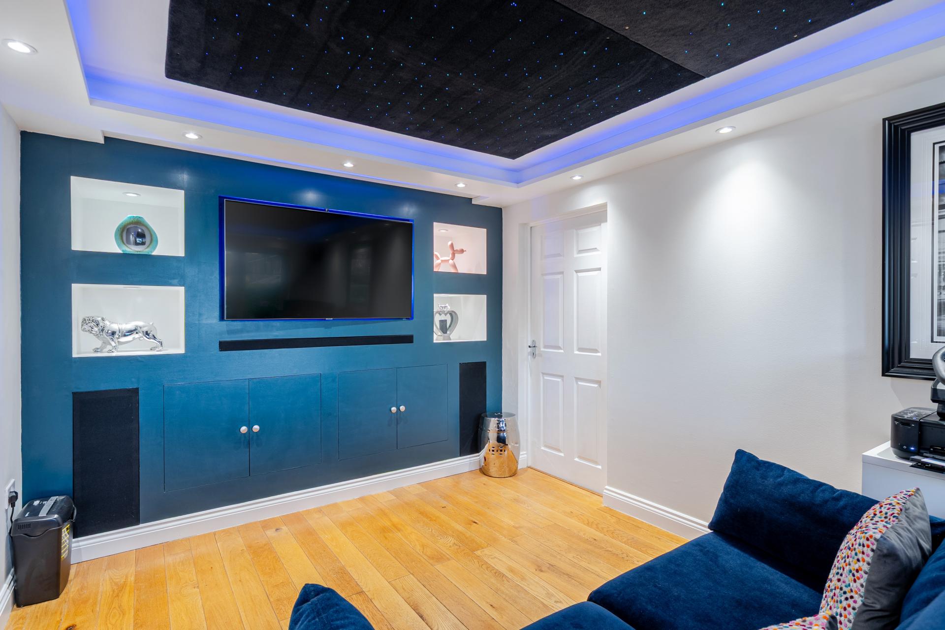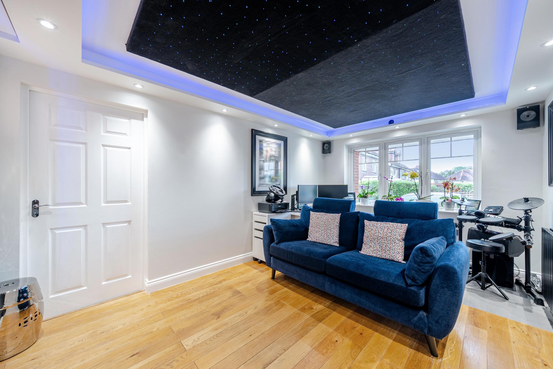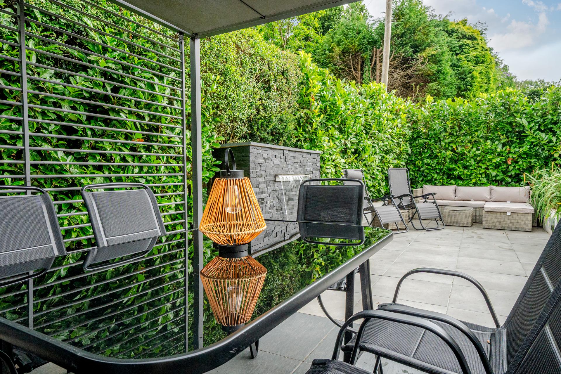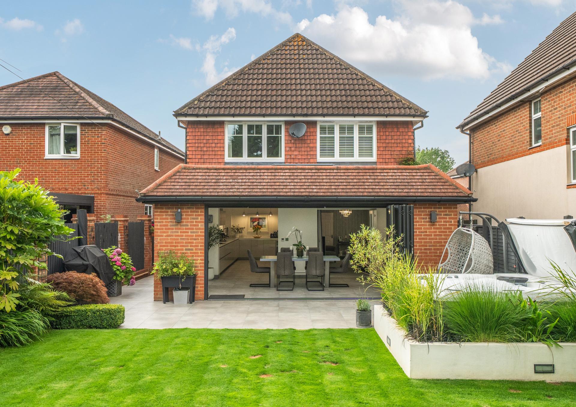 The rear garden is contemporary in style, south east facing, with two terraces, perfect for summer entertaining, space for a hot tub, stylish water feature, garden lighting and underground pop up sprinkler system. To the front of the property there is a single garage, parking for 3 cars and electric vehicle charging point.
