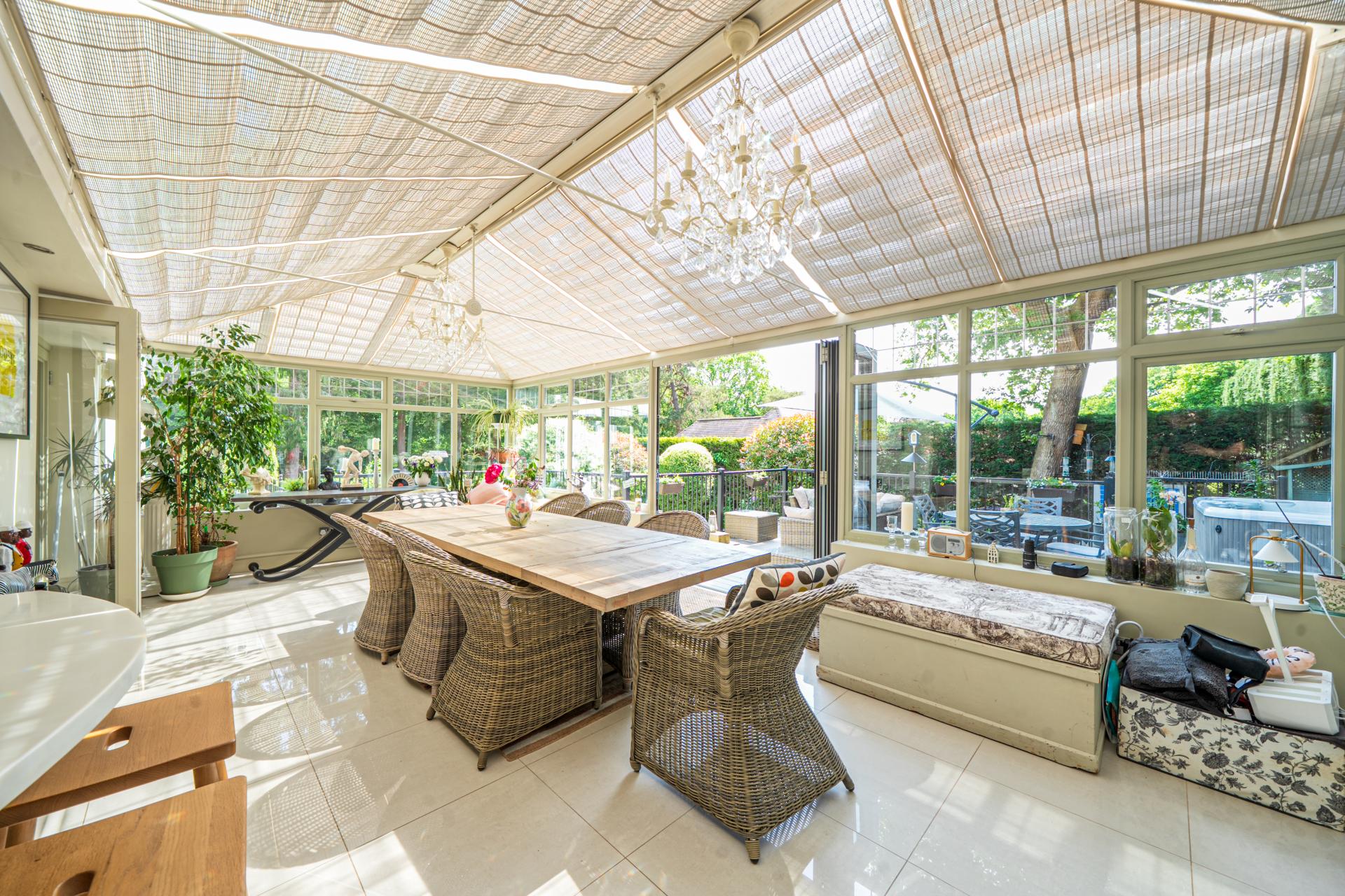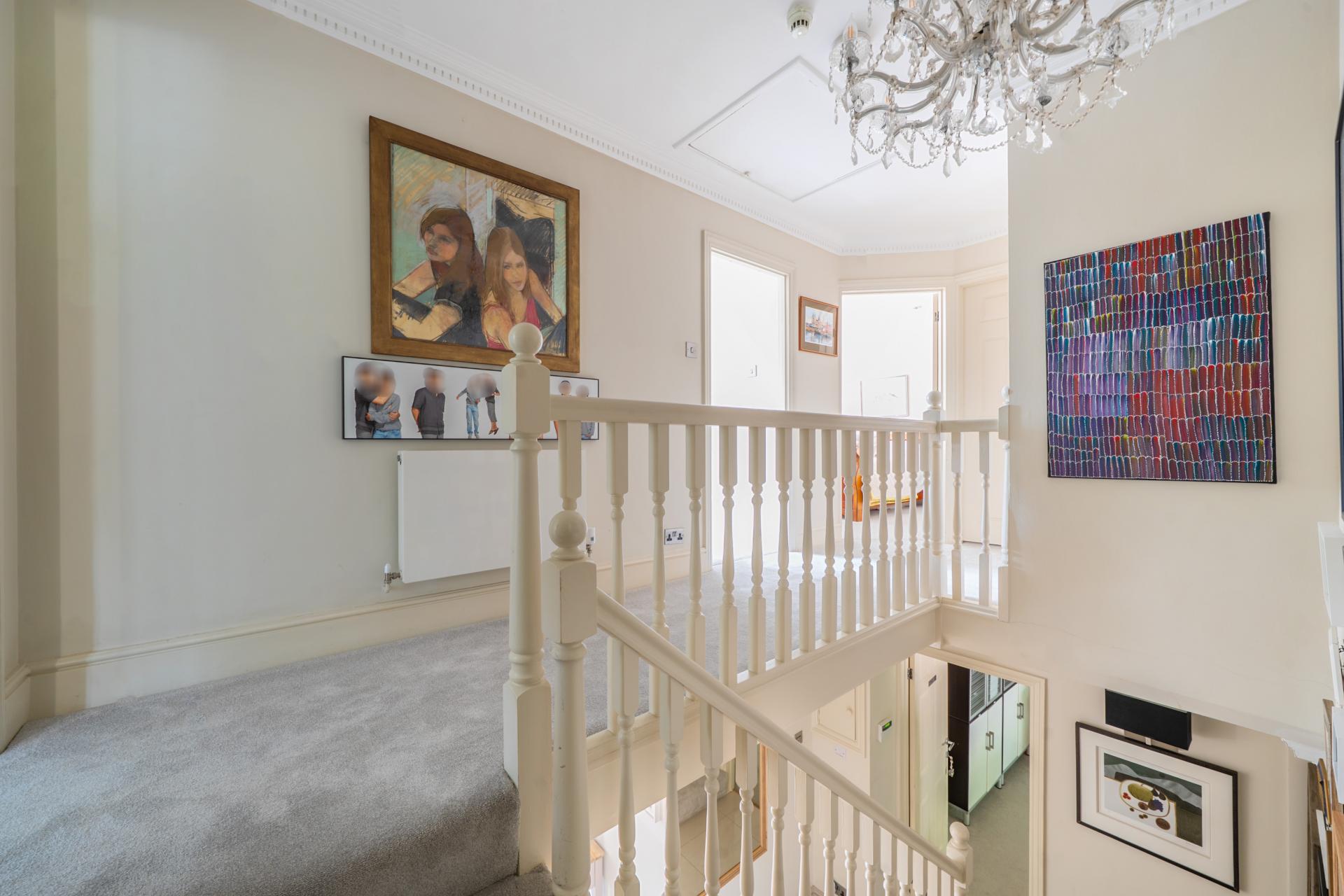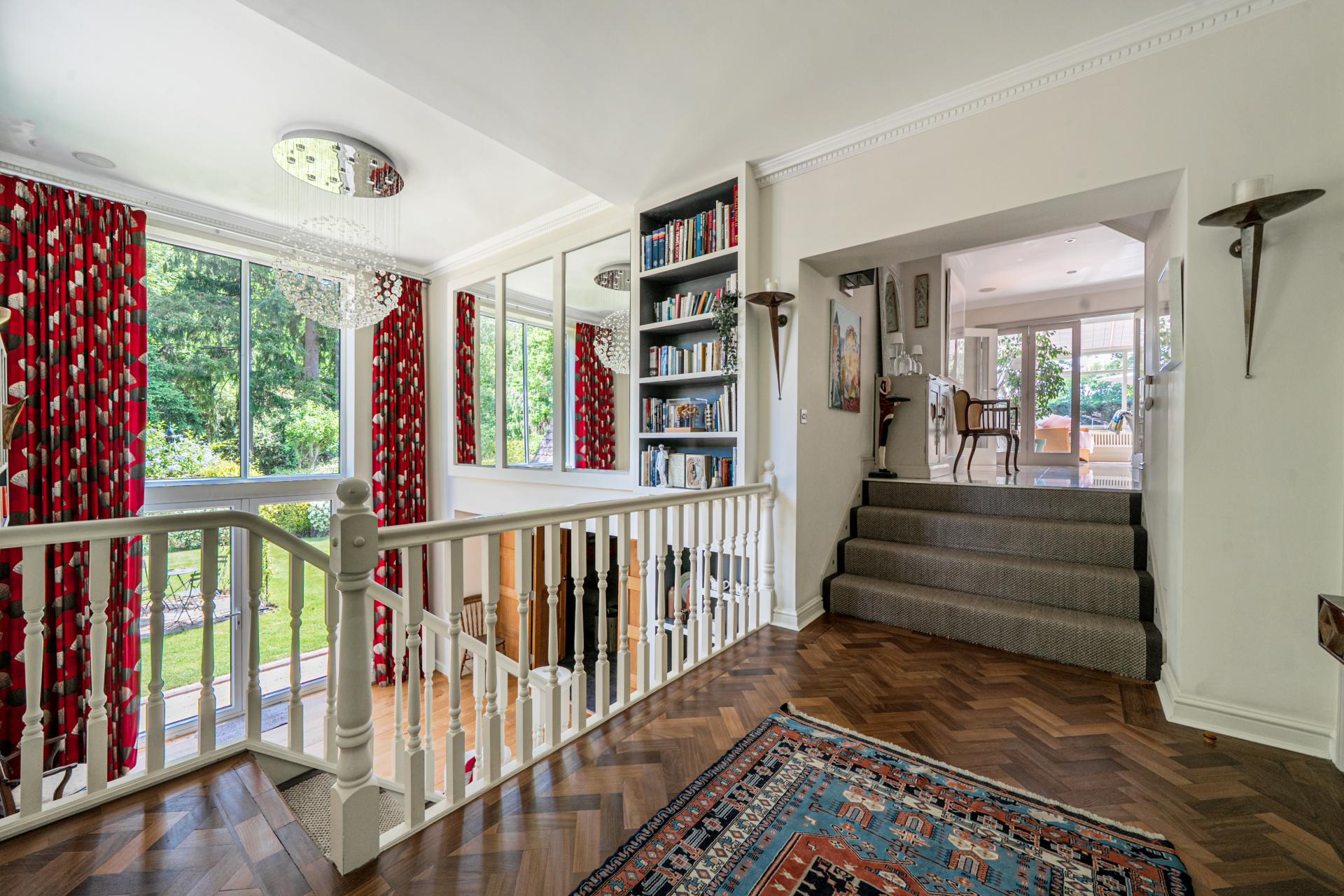 Approached via a gated driveway, with steps leading up to a storm porch, this detached family home has been refurbished by the owners, who purchased this property from us in 2013. Upon entering the light filled entrance hall, a staircase leads down to the music room/library with french doors onto the garden and double doors leading into a cinema room/occasional bedroom with an ensuite shower room with underfloor heating.