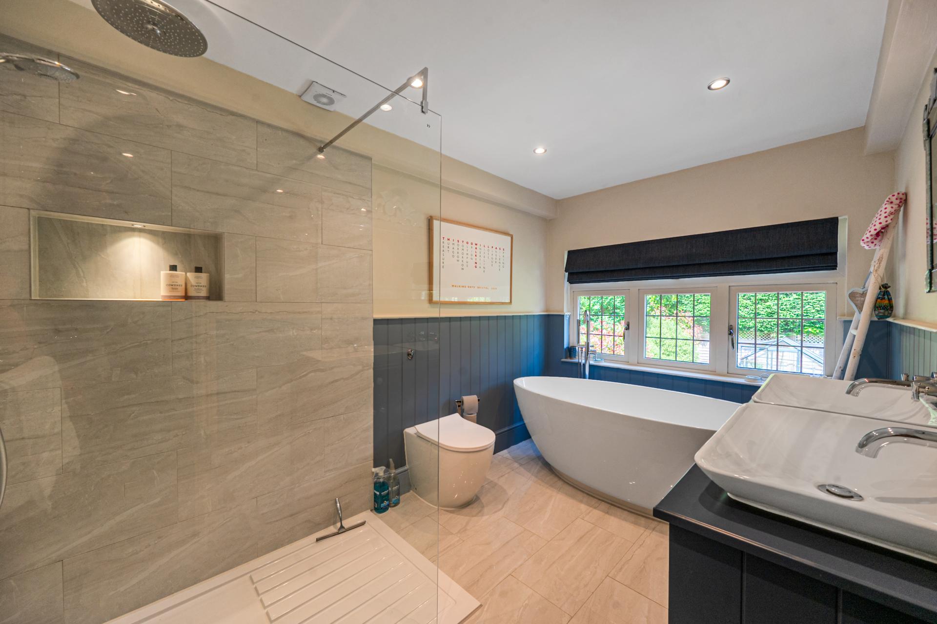 The second floor comprises of a double aspect principal bedroom with views overlooking the tree tops, fitted wardrobes and an ensuite bath/shower room with twin hand basins. There are three/four bedrooms, all bedrooms have fitted wardrobes, an ensuite shower room and family bathroom.