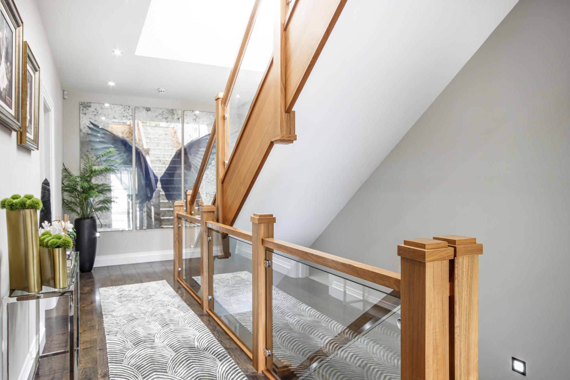 Substantial and impressive with five bedrooms, three dressing rooms, five luxurious bath/shower rooms, balcony to the principle bedroom, superb open-plan kitchen/dining/drawing room with bi-folding doors leading to the rear sun terrace, a study to the front aspect, a utility room leading to the boot room with a dog washing station. To the basement is a fabulous cinema room with bar, a wine store, gymnasium with shower facilities, sauna, steam room and games room.