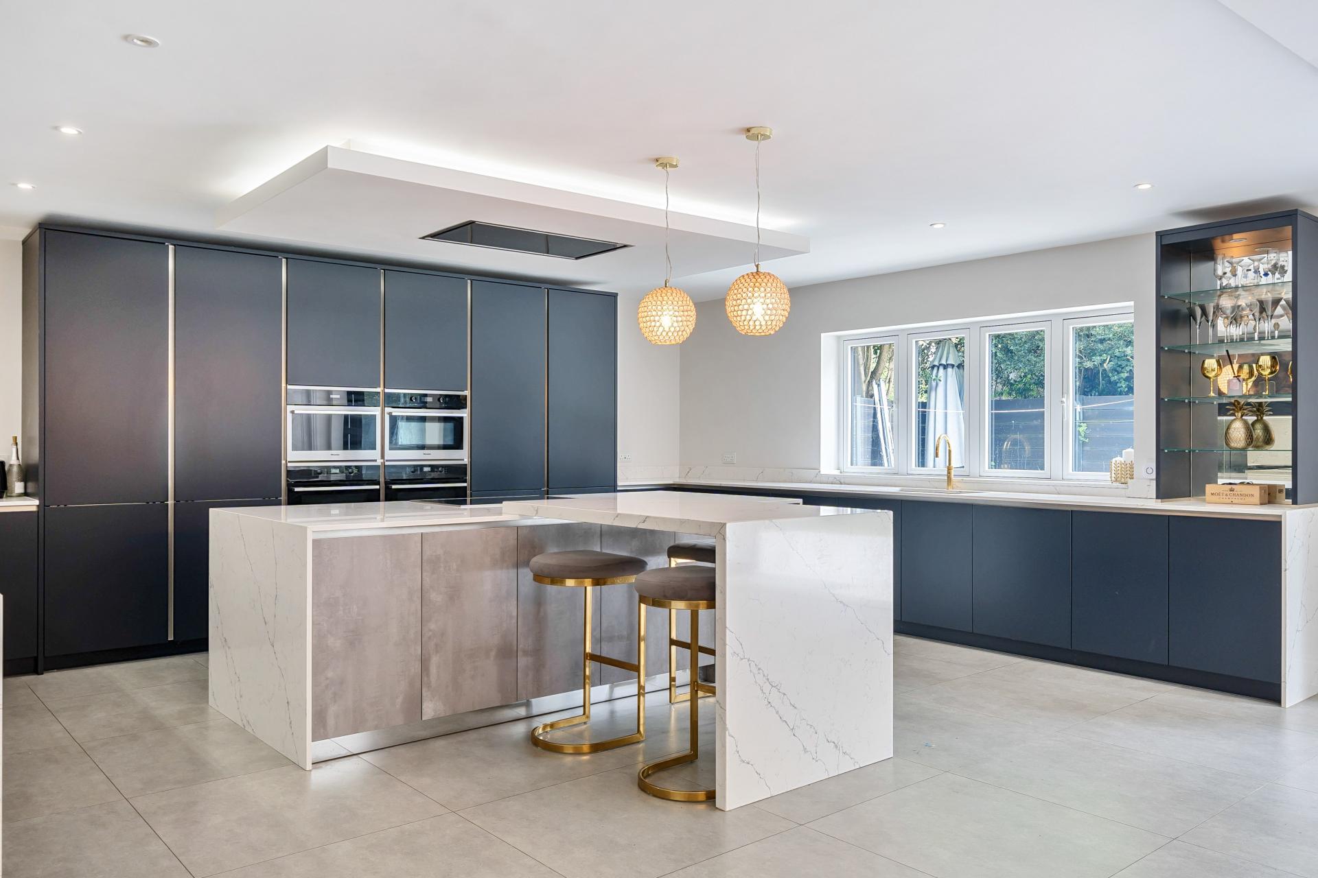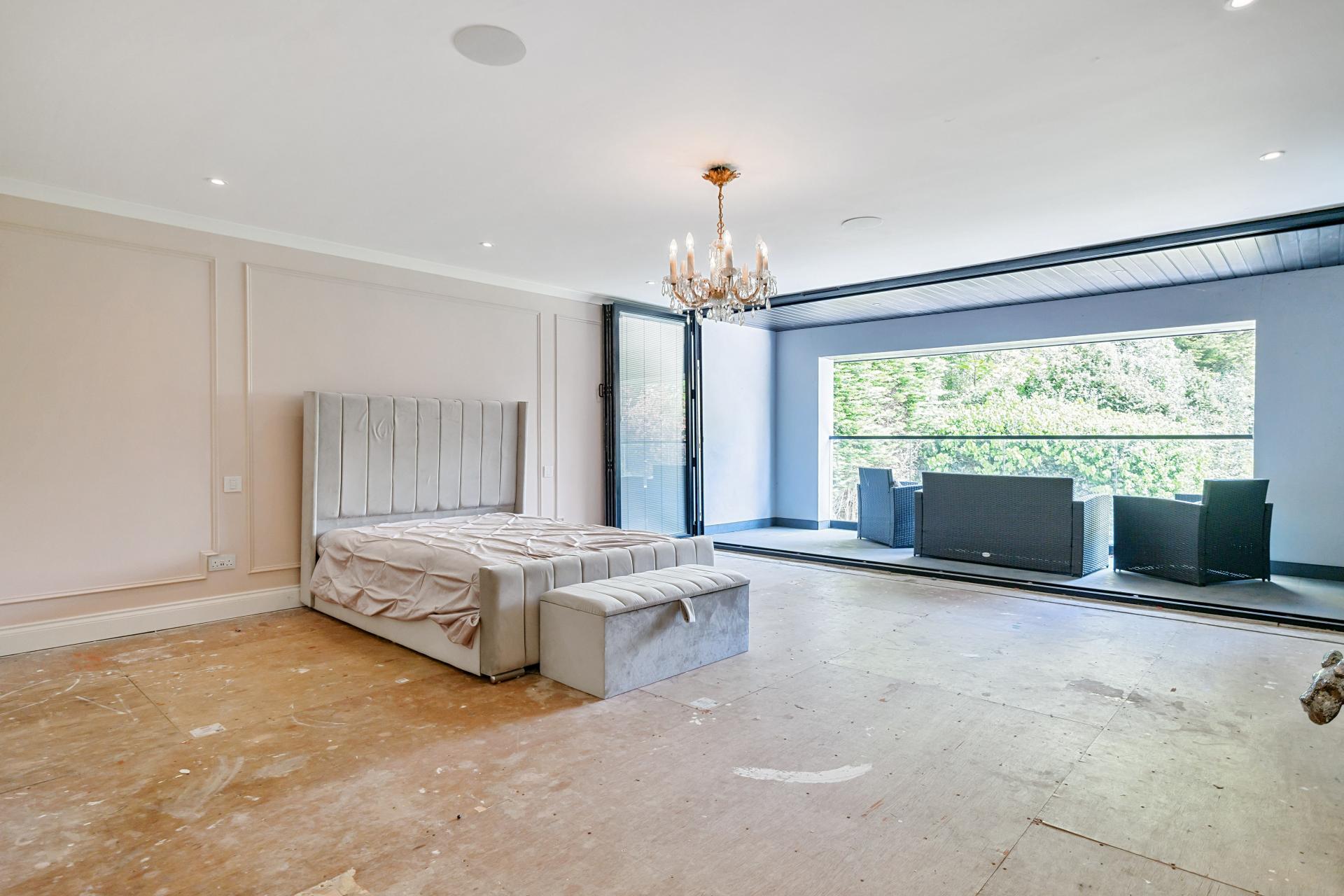 The upper floors offer six double bedrooms, each with a walk-in wardrobe and space for six bathrooms. Two bedrooms come with private terraces overlooking the garden. A study is located on the second floor as well as a utility room and a further wardrobe. The property also features underfloor heating, cat 6 wiring, ceiling speakers, control 4 automation and so much more.