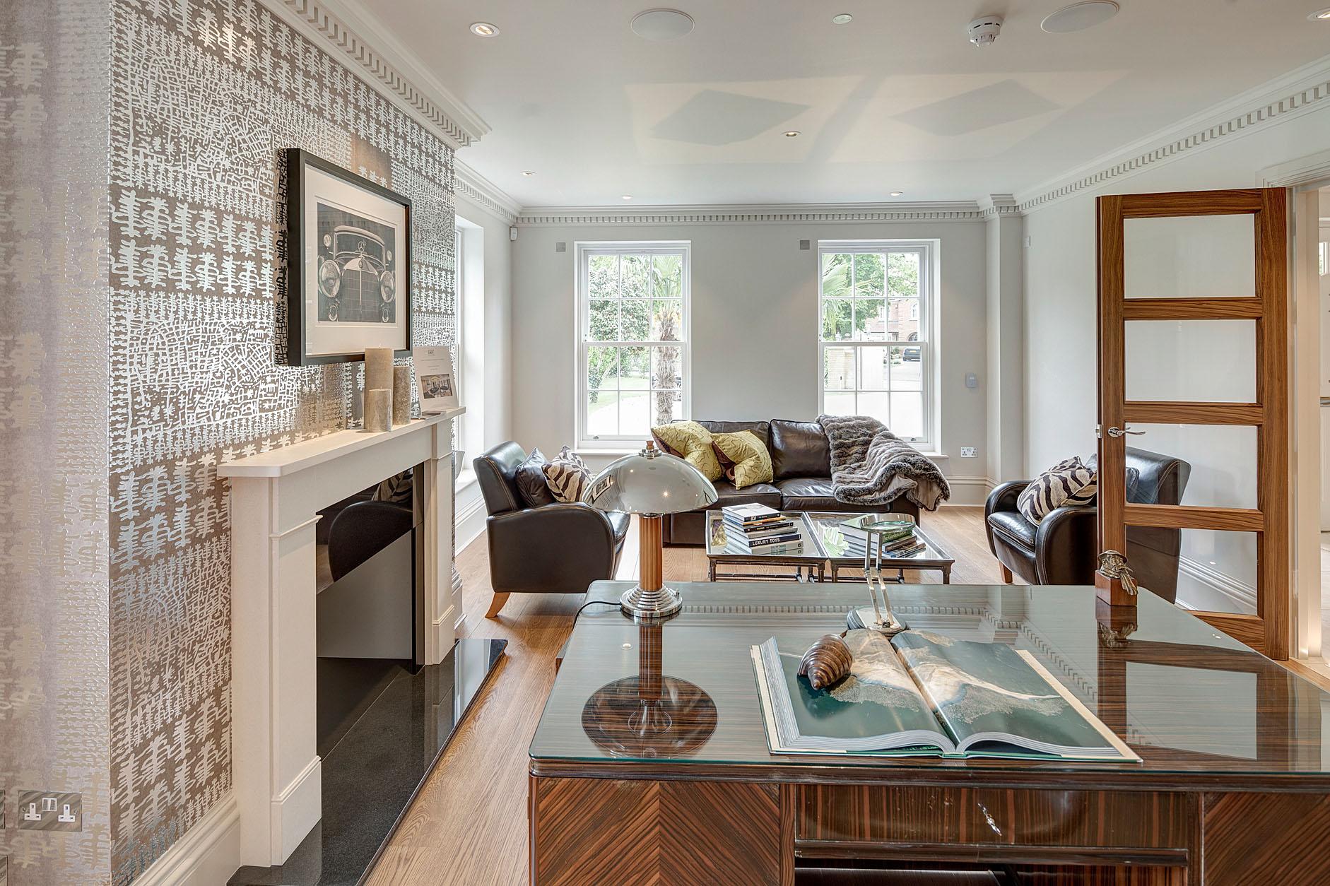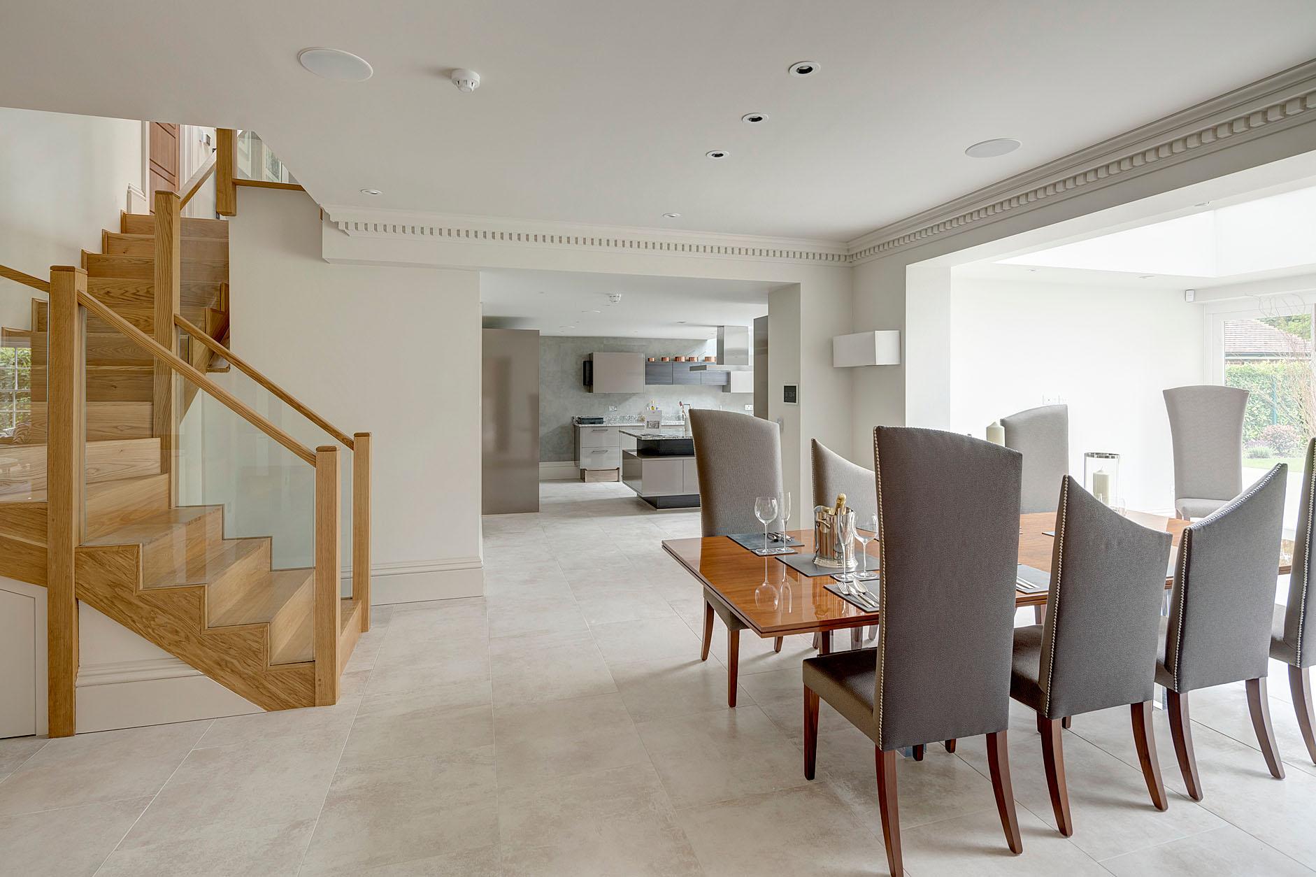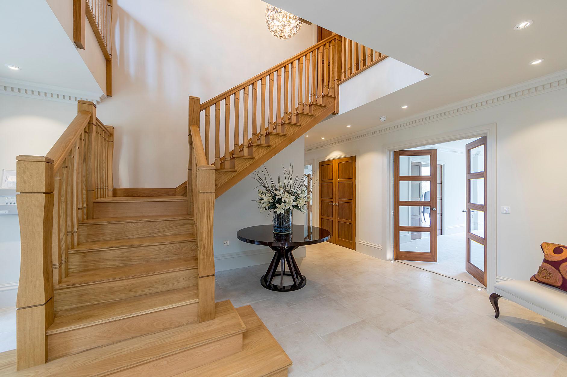 Approached through a gated driveway, Woodlands offers approximately 6800 sq ft of accommodation across three floors, all set within spacious grounds of 0.6 of an acre. The property is entered via an impressive stone portico into a hallway flooded with natural daylight and with views through the drawing room and across the south facing garden.