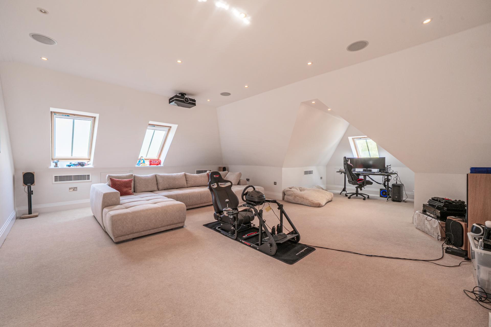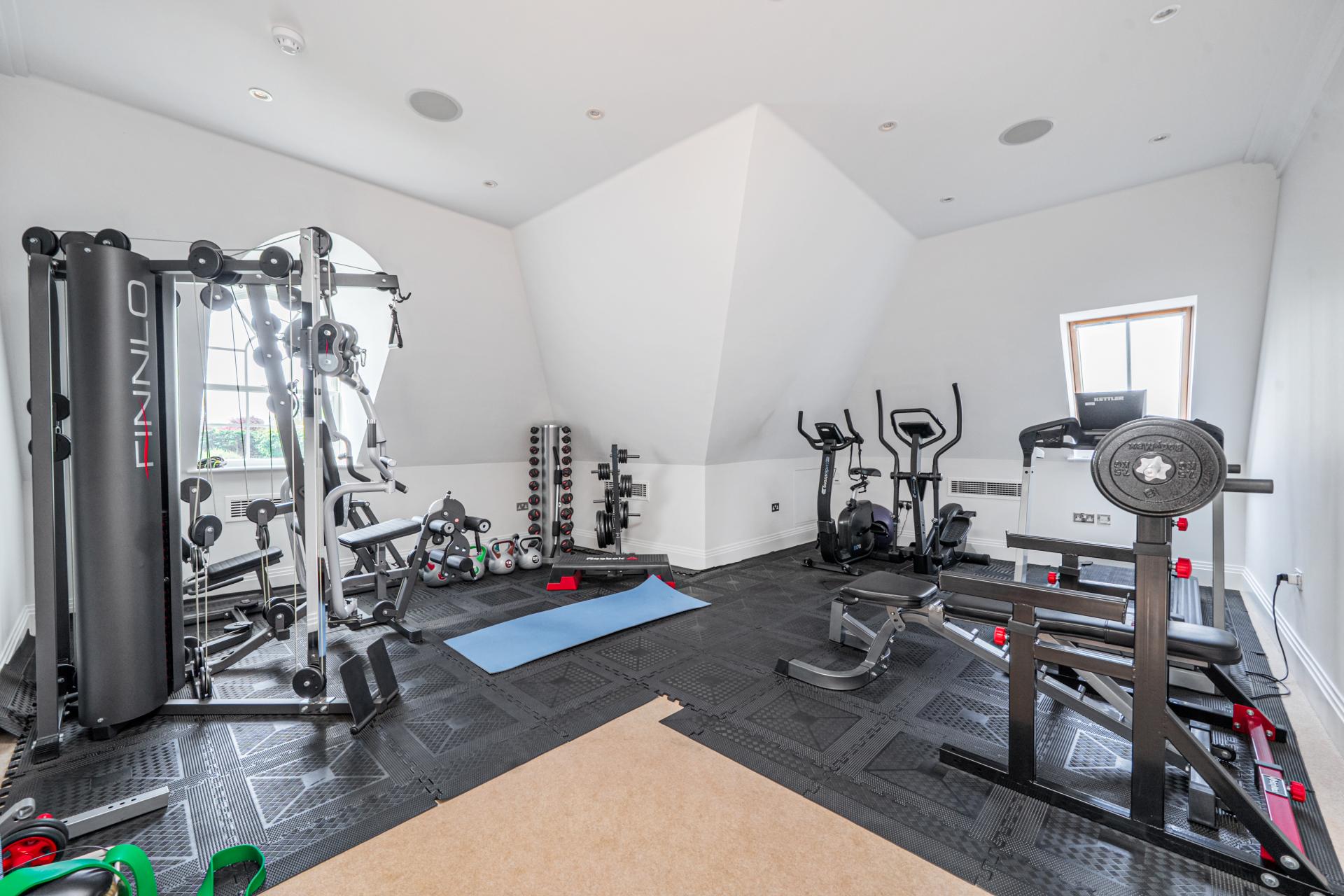 To the first floor a large landing, principal bedroom with dressing room and luxury ensuite bath/shower room and three further bedrooms with ensuites. To the top floor are two further bedrooms, two shower rooms, sitting room, cinema/media room and a gymnasium.