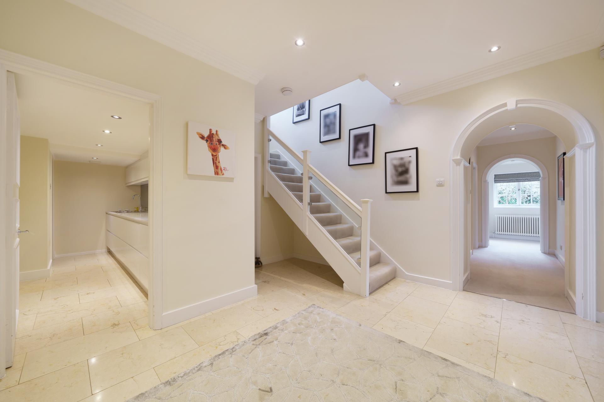 On the ground floor, leading from a generous reception hall are three reception rooms, a gymnasium, a study and a luxurious kitchen/breakfast room with a central island, vaulted ceiling, stone fireplace and beautiful arched windows with doors to the rear garden and patio. Furthermore there is also a utility room, two cloakrooms, access through to the garage, original features and underfloor heating to several ground floor rooms.