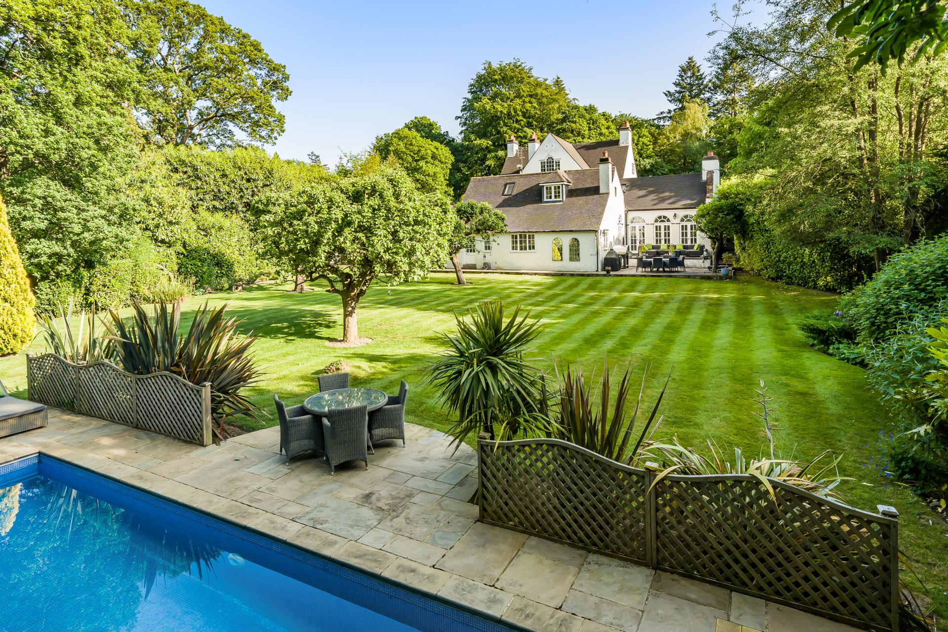Glade House is a striking period home discreetly situated in one of Kingswood’s premier private roads, surrounded by picturesque grounds and superbly presented throughout. This attractive family home offers six bedrooms with a seventh bedroom potentially lending itself to use as a self-contained annexe. The property sits effortlessly within its surroundings, offering spacious accommodation measuring almost 7000 sq ft laid out over three floors and a fabulous plot measuring circa 1.25 acres with a heated swimming pool.