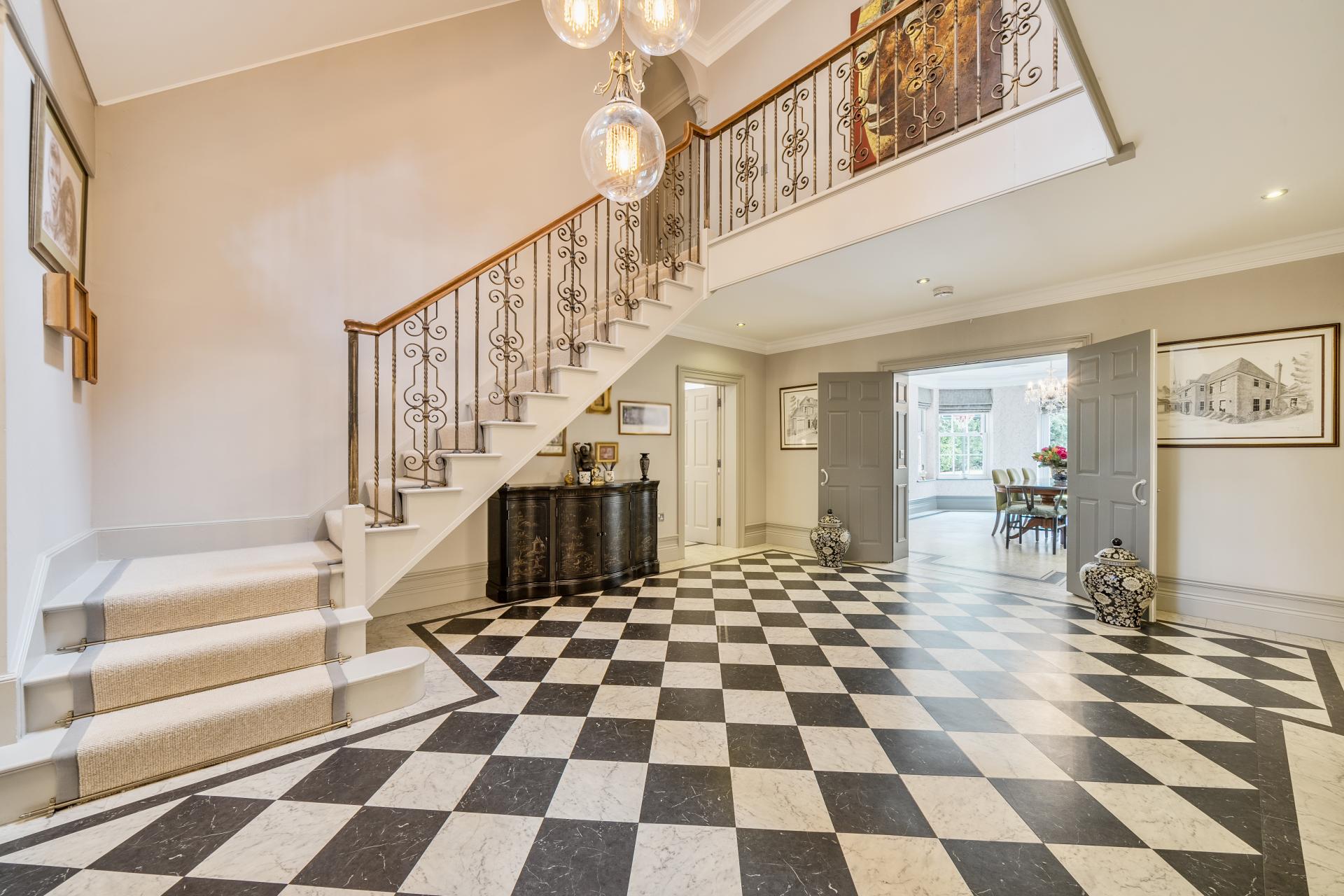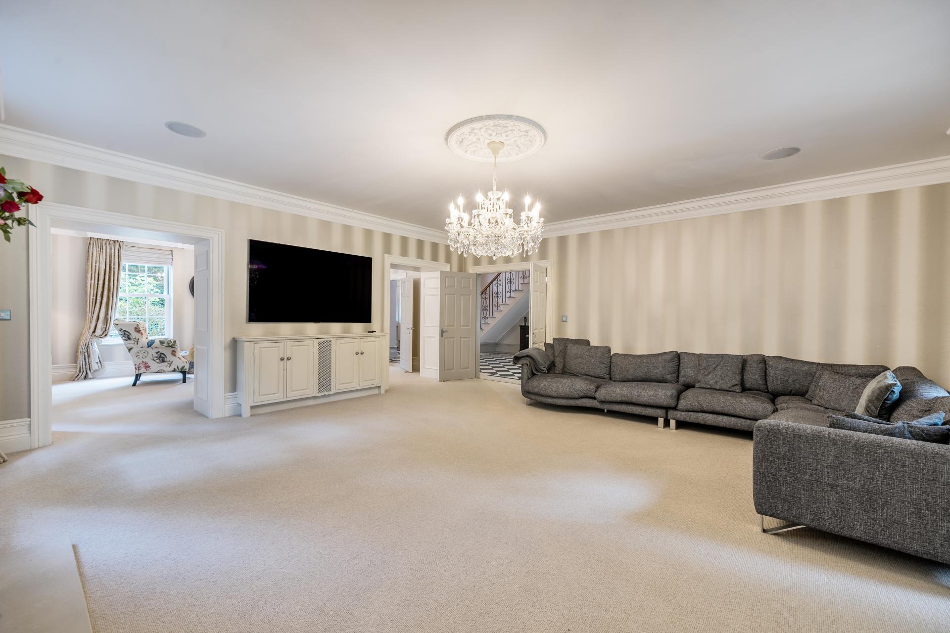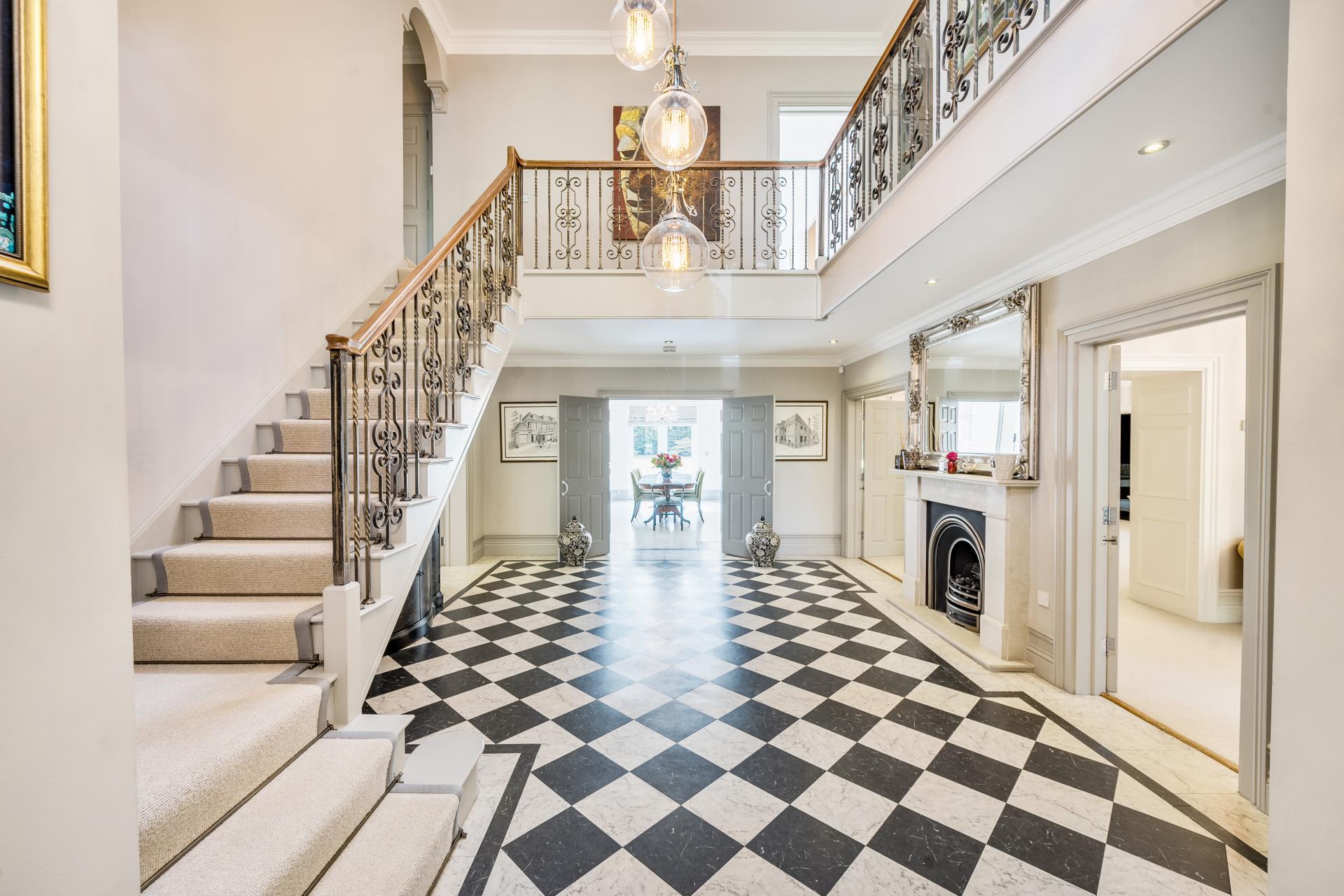 Upon entry to Evelyn House you are greeted by a stunning triple height reception hall with an elegant staircase to one side and a beautiful period style fireplace. The accommodation downstairs consists of a large drawing room to the rear with access to a family room at the front, a rear facing dining room with patio doors to the garden, a cinema room, a fully fitted study and a fabulous hand painted Loxley kitchen/breakfast room with an extensive range of fitted appliances and quite brilliant walk-in refrigerator. On top of this there is also a utility room, coat and shoe closet and a modern cloakroom.