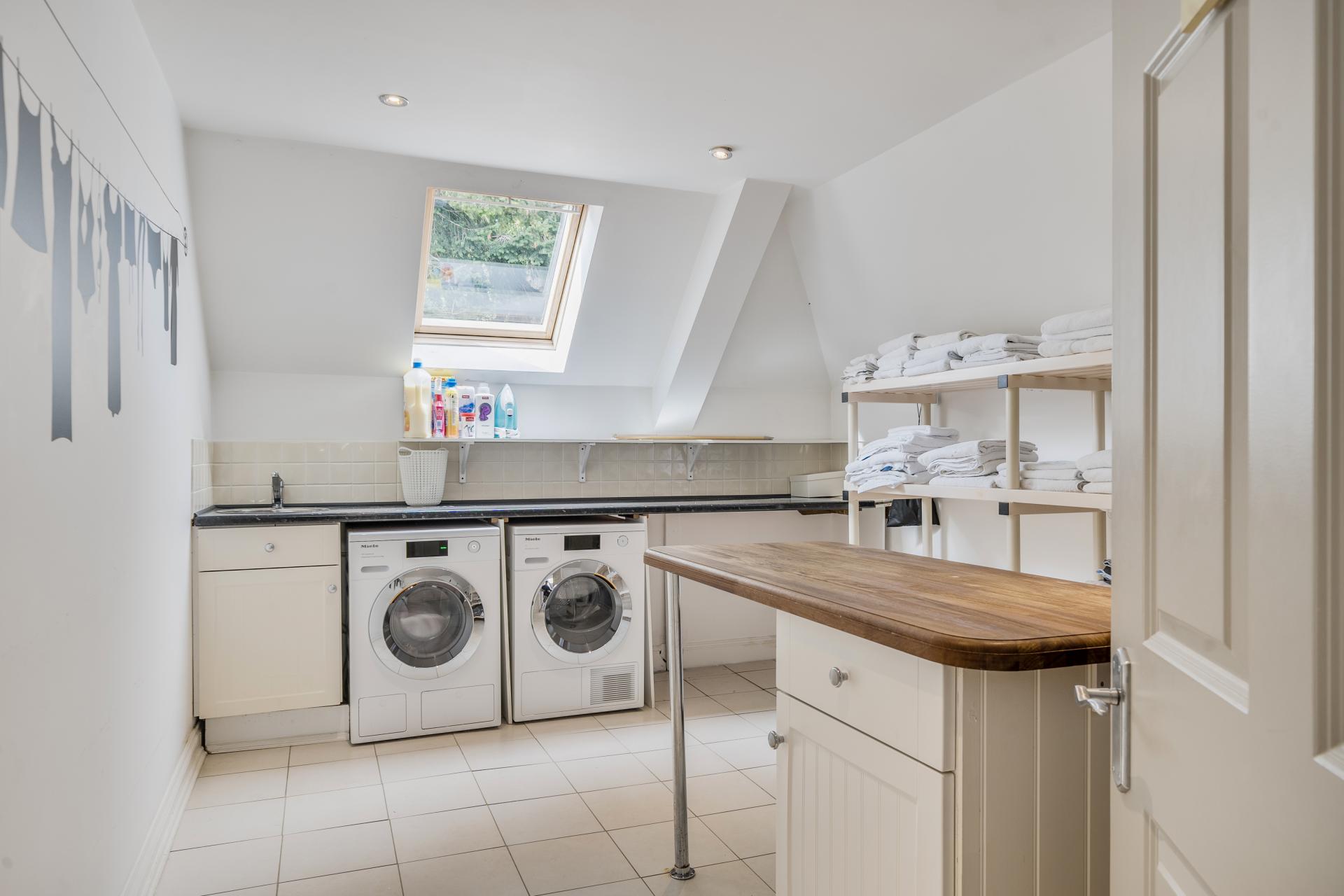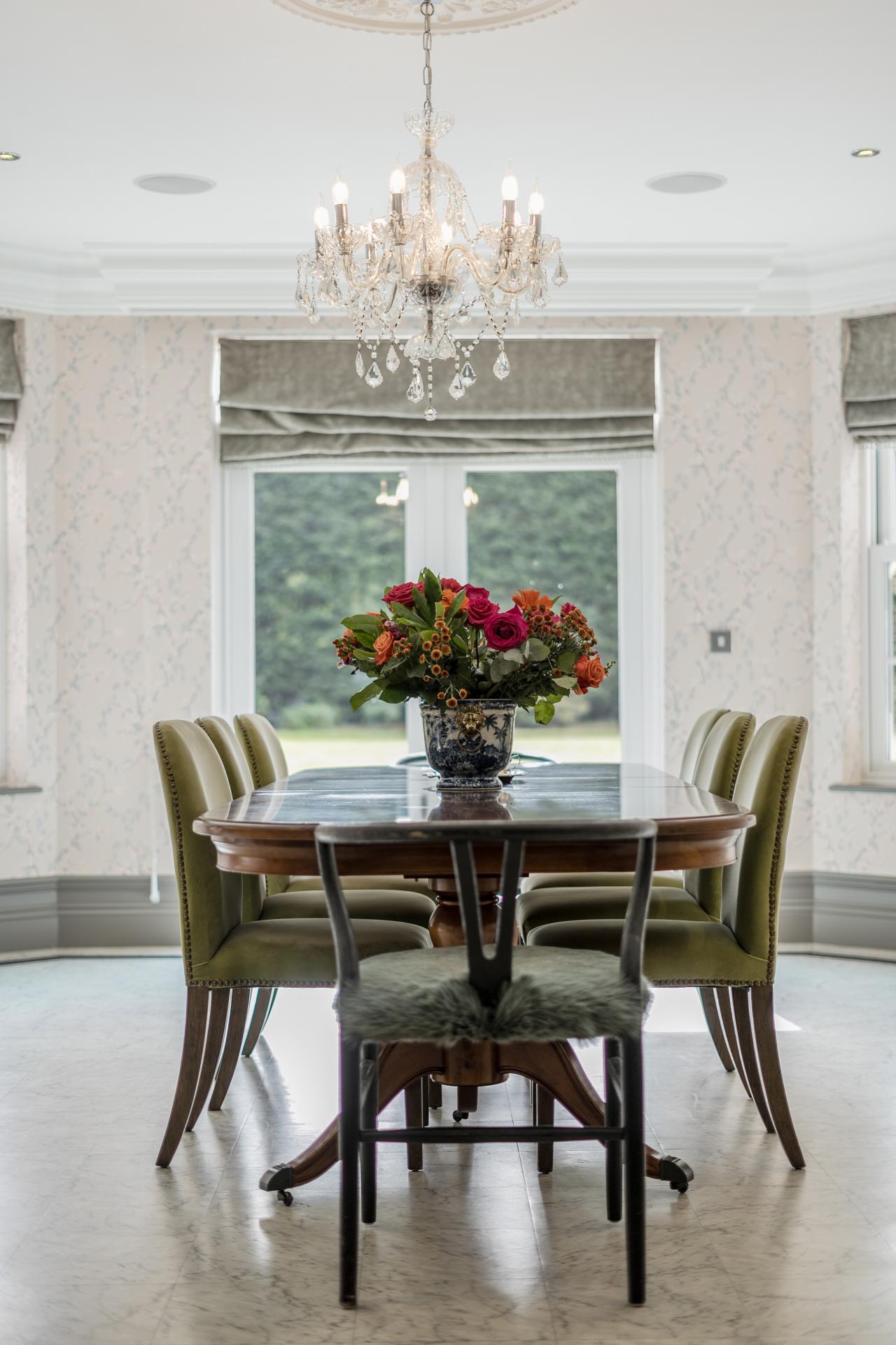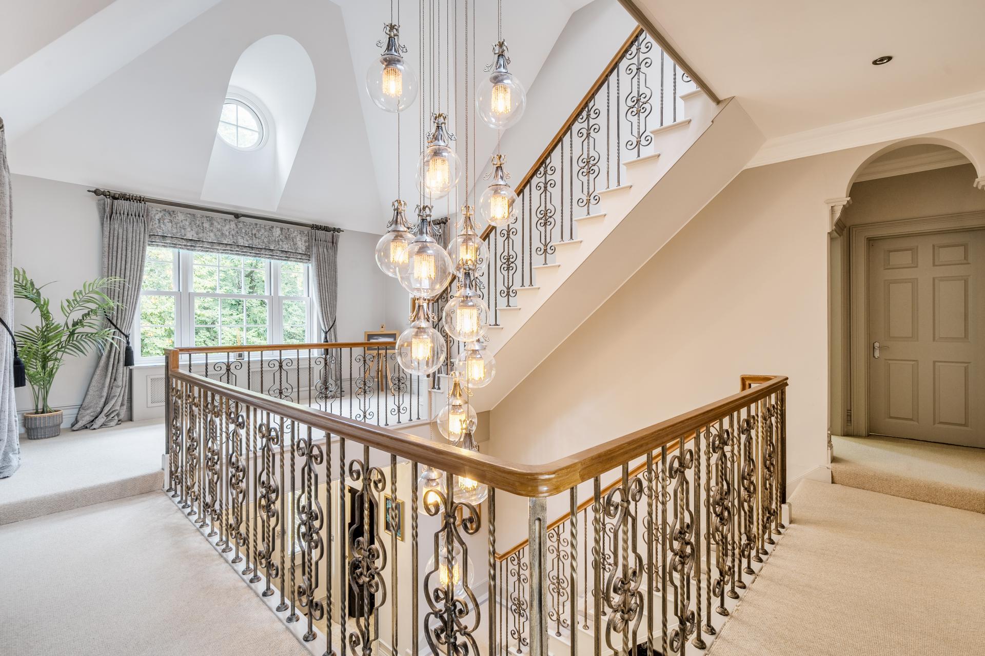 Upon entry to Evelyn House you are greeted by a stunning triple height reception hall with an elegant staircase to one side and a beautiful period style fireplace. The accommodation downstairs consists of a large drawing room to the rear with access to a family room at the front, a rear facing dining room with patio doors to the garden, a cinema room, a fully fitted study and a fabulous hand painted Loxley kitchen/breakfast room with an extensive range of fitted appliances and quite brilliant walk-in refrigerator. On top of this there is also a utility room, coat and shoe closet and a modern cloakroom.
