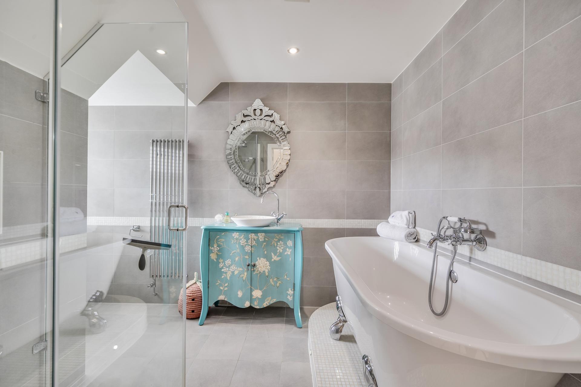 Evelyn House is an immensely stylish family home, offering a superb level of flexibility to suit almost any requirement. Accessed via a private and secluded 300ft driveway, this substantial seven double bedroom home, which includes a self-contained one bedroom apartment as well as a studio/annexe above the triple garage. The property is set within secluded grounds measuring just over an acre with approximately 6200 sq ft of elegant, stylish and user-friendly accommodation arranged over three floors.
