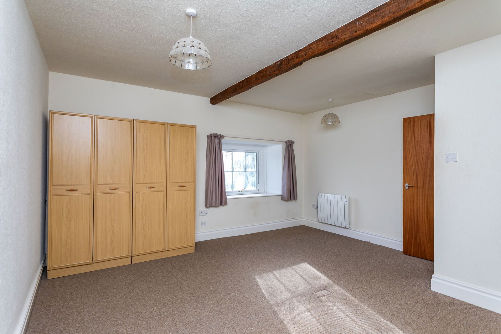 Come with us on a tour… the front door opens to a hall from which the staircase rises to the gallery landing above with a tall arched window making a prominent feature. There are three reception rooms as well as a lovely garden room on the sunny south facing elevation. Adaptable as to how you use them, all three are of a good sized and have characterful exposed ceiling beams. The sitting room also has exposed wooden window lintels, a dual aspect running front to back and a Rayburn open fire. The adjacent living room also enjoys a south facing view to the front garden, a convenient gas fire and an unusual, old wooden boarded door set into a characterful stone arch. The dining room has an atmospheric wood burning stove and is linked to the living room by the connecting garden room, which with two walls of glazing and a door to outside, enables a good flow out to the garden. From the dining room there is an opening into the characterful breakfast kitchen which has a triple aspect, exposed beams and window lintels. The cabinets may be ready for replacement, but they will certainly set you on as plans are finalised for your dream kitchen. AEG appliances include a double oven, hob, fridge and dishwasher. The utility room houses a washing machine and condenser tumble drier, has a handy door to the garden and a useful walk-in cupboard. Completing the ground floor picture are a shower room, side vestibule and boot room.