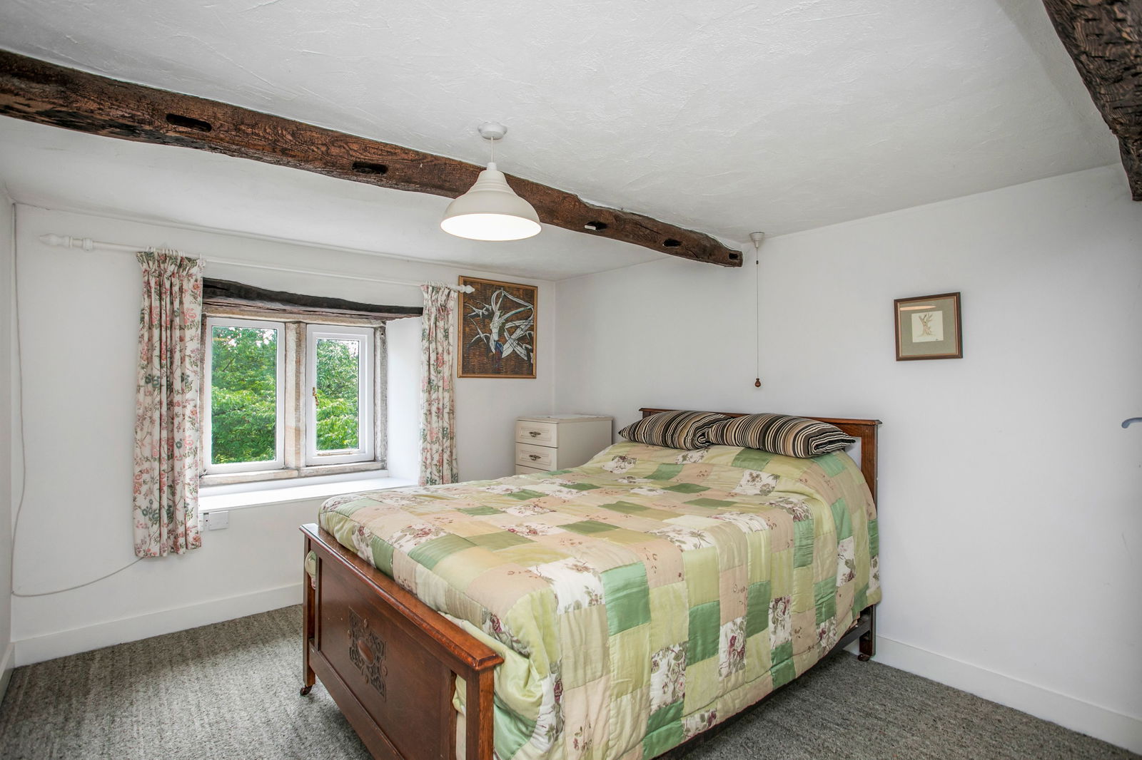 An impressive feature is the stairwell, a tall, stone mullion window with exposed stone surround allowing natural light to flood in. The landing is split level and has an airing cupboard with storage space. There is a good bed to bath ratio with four double bedrooms, a bathroom and two shower rooms. An enclosed staircase leads to the second floor and opens directly into the first attic room. Characterful with exposed roof timbers and a Velux skylight, a door leads into the second attic room, a good room for storage, children or hobbies. This room also has exposed woodwork with a Velux and dissecting truss which limits use to a certain extent.