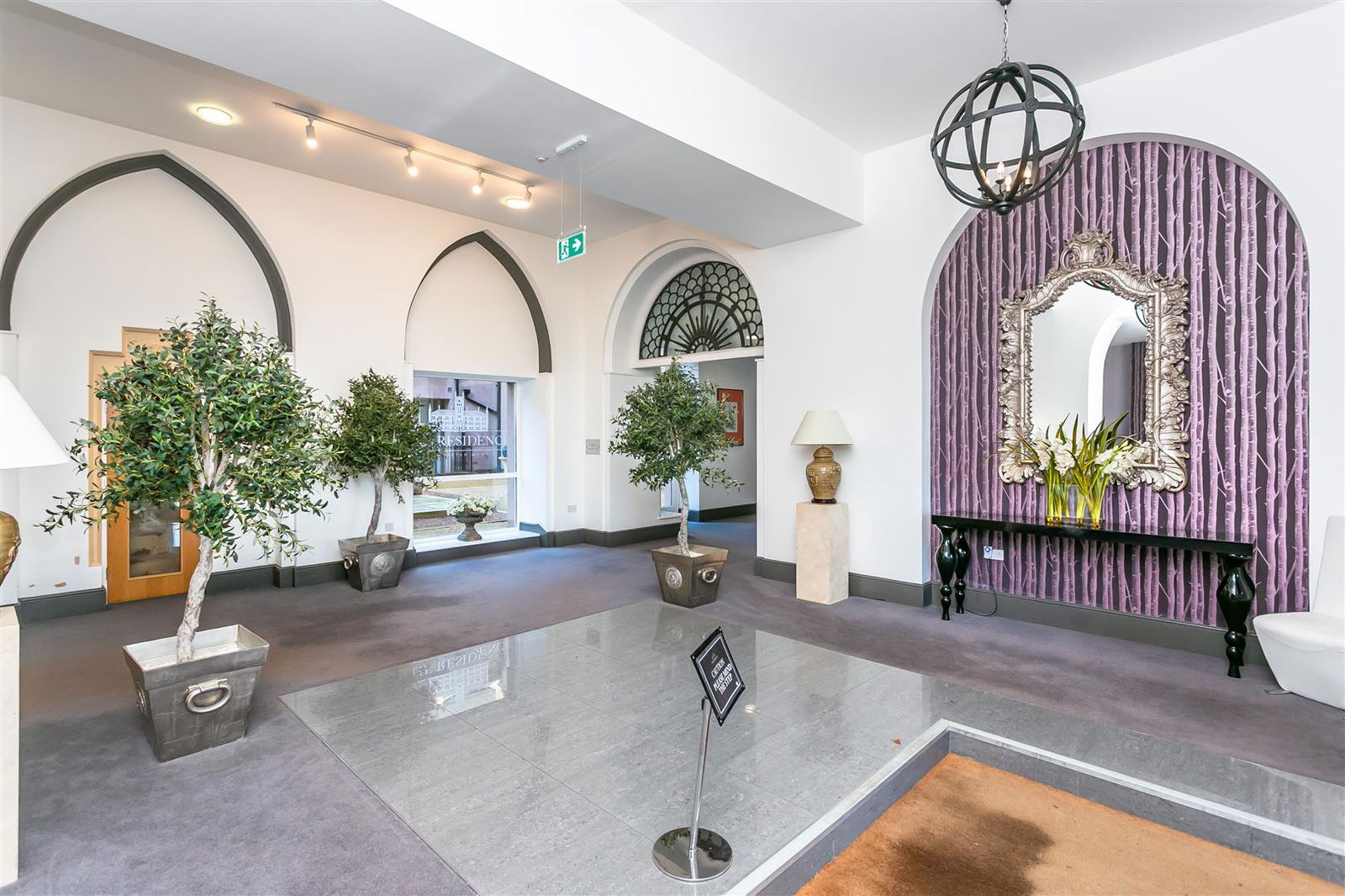 Entering through the impressive main entrance of The Residence is a befittingly grand communal entrance hall that perfectly showcases the gothic heritage of the building with striking original features and sympathetic finishes. Situated on the second floor, The Tower can be accessed via both the staircase or lift. You enter the apartment into a wide and light filled entrance hall with tall windows leading the way in. There is plentiful space for coats and shoes along with access into a neatly presented WC, utility room and wide steps that continue up to the private lift of the apartment. The first reception room you enter in to is the dining room. A handsome space featuring the tall arched windows of this historic building, looking out over the front. There is ample space for a large formal dining table and a useful walk in storage cupboard. Steps lead up into the open plan kitchen and living space. With an L-shape design, this works