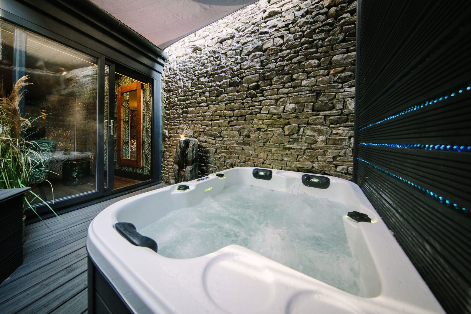 Situated at the rear of the property with a separate entrance it comprises a large bedroom with sitting area and an ensuite bathroom and access to a private outside hot tub area.
