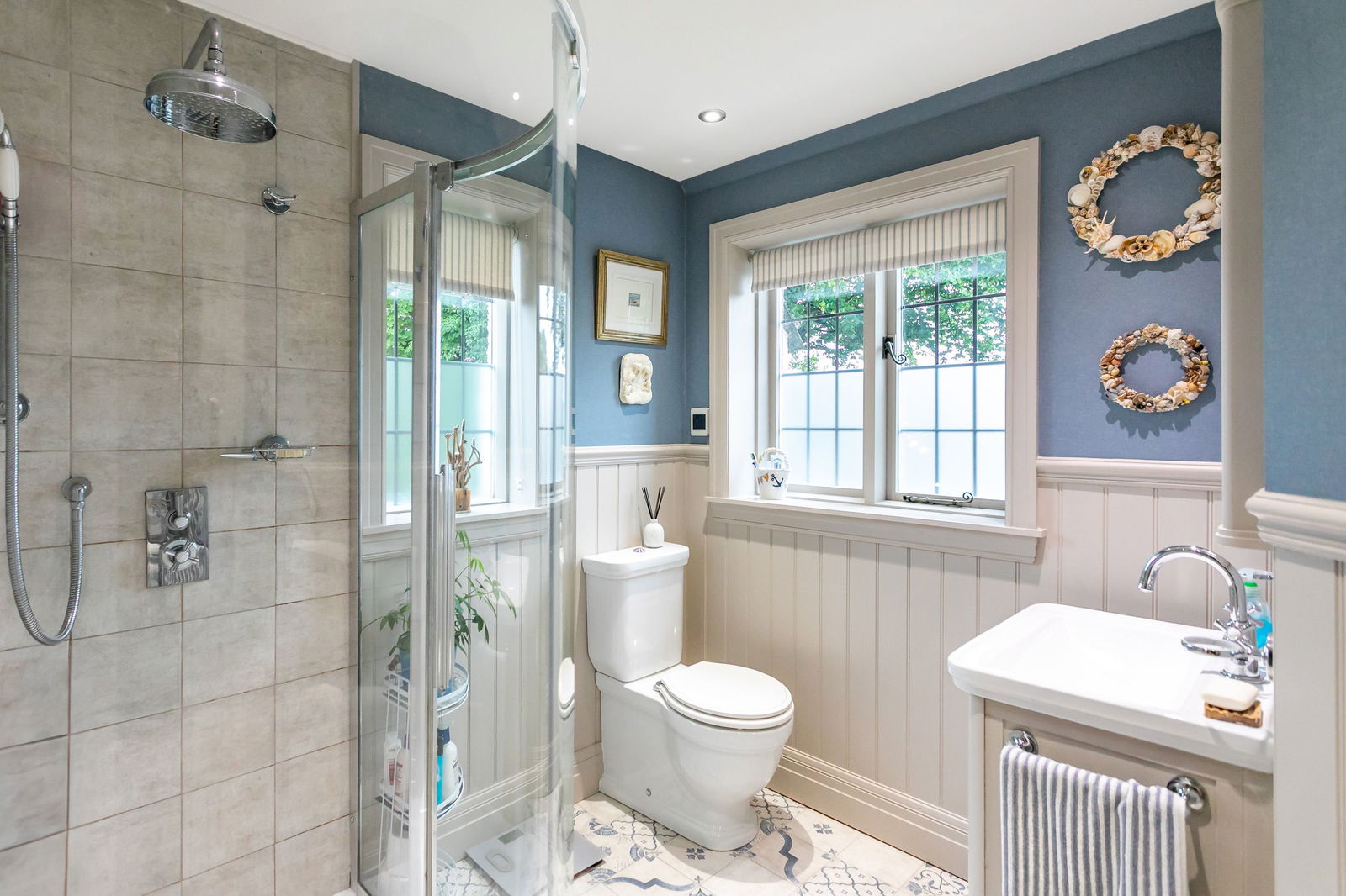It is not entirely a period piece however, moving with the times and sympathetic upgrades ensure that this is a house perfectly suited to modern family living. The present owners bought the house in 2017 and have replaced kitchen, utility room, bathroom, bathroom, shower room and cloakroom fittings. The house has been decorated from top to bottom with wallpapers and paints in gently harmonious and muted shades reflecting the garden and leafy surrounds. The result is a restful air of calm that flows throughout.