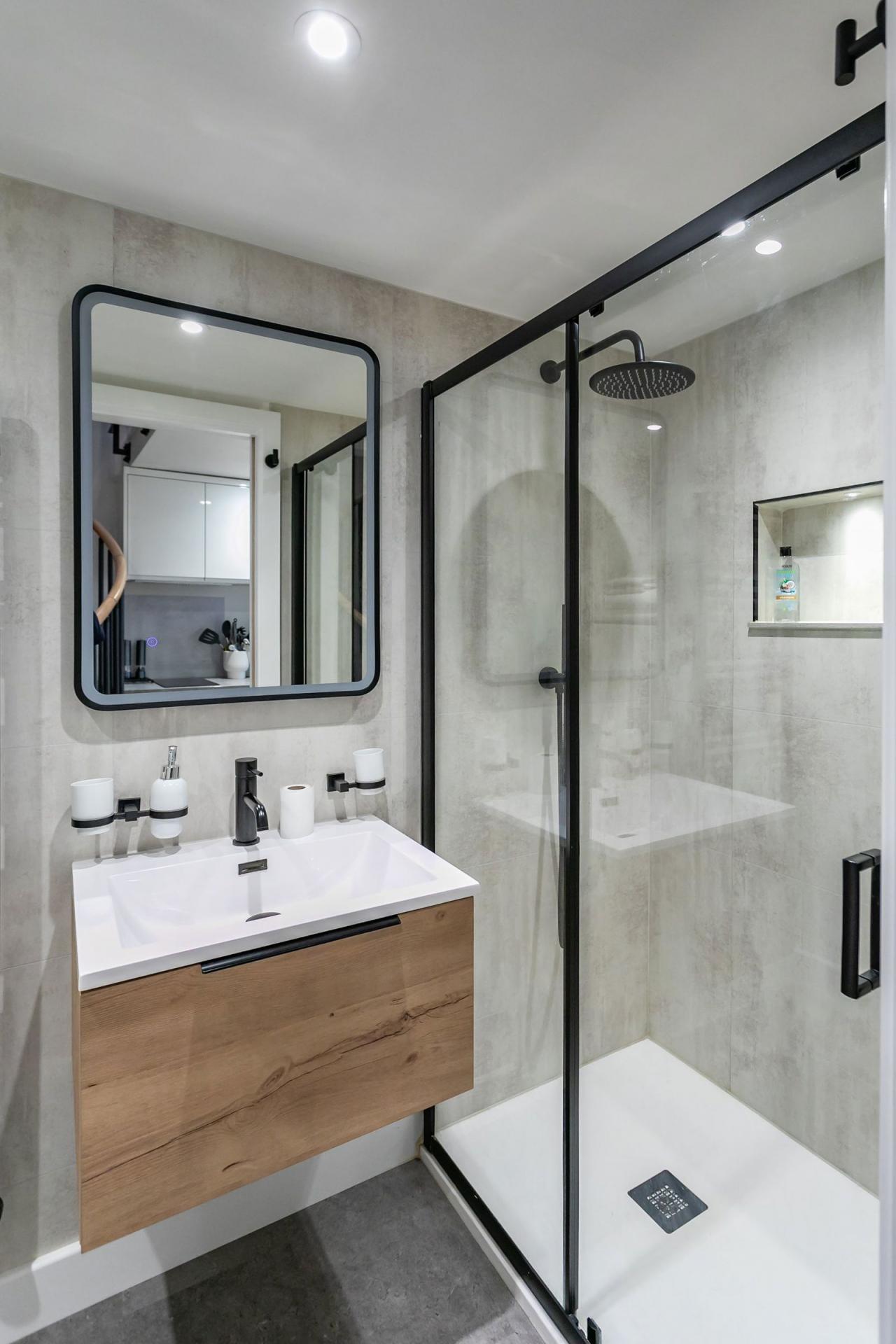 Skylight Retreat – Mains electricity, electric underfloor to the ground floor controllable remotely via an App. Water and drainage shared with main house.