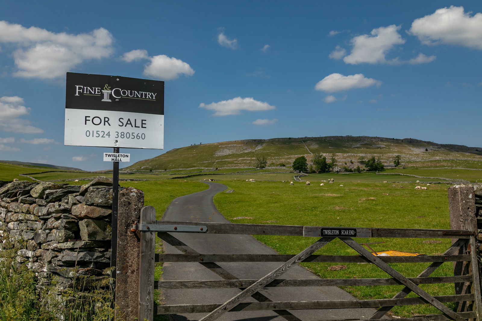 Approaching Ingleton from the west along the A65, turn left opposite Country Harvest and proceed on New Road as it then becomes Holme Head Farm Road. Drive under the viaduct, passing the entrance to the Ingleton Waterfalls Trail and cross over the River Doe, turning immediately left onto Oddie’s Lane. Continue for just under a mile, there is a gate on the left bearing the name Twistleton Scar End. Turn in here (closing all gates behind you) and continue up to the six properties. Twisleton Hall is one of three on the right, it stands at the back of the grouping, furthest most east.