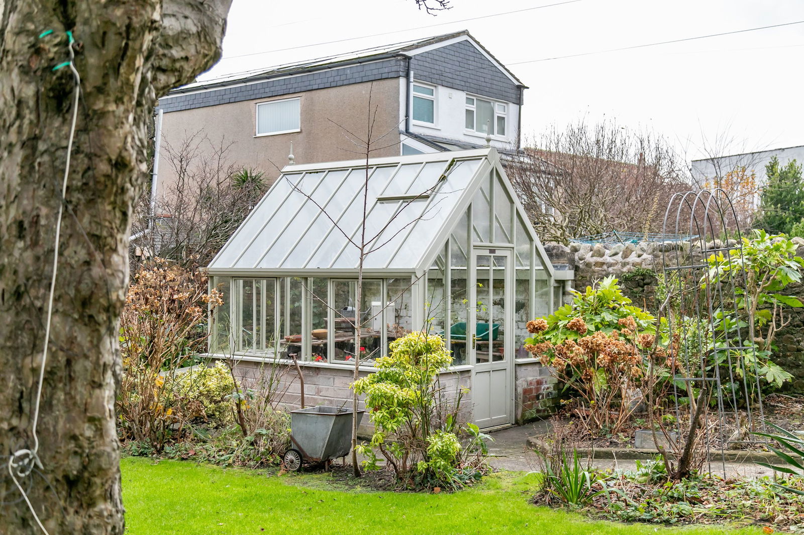 Approached from either the vestibule off the kitchen or the dining room, the rear garden is an absolute delight, the rooms facing east look out over it and enjoy the benefits of the abundant planting with a wide variety of established flowering shrubs, including hydrangeas and forsythia, and well stocked herbaceous borders, including hellebores and agapanthus. In spring there is pink blossom on the apple trees to be enjoyed. The back garden has many birds visiting and enjoys the morning and lunch time sun, so lovely for eating outside when the weather is favourable. Those with green fingers will appreciate the traditional Hartley Botanic greenhouse and cold frame, painted in a tasteful soft green. There is an outside loo, practical if you are working in the garden and don’t want to traipse through the house.