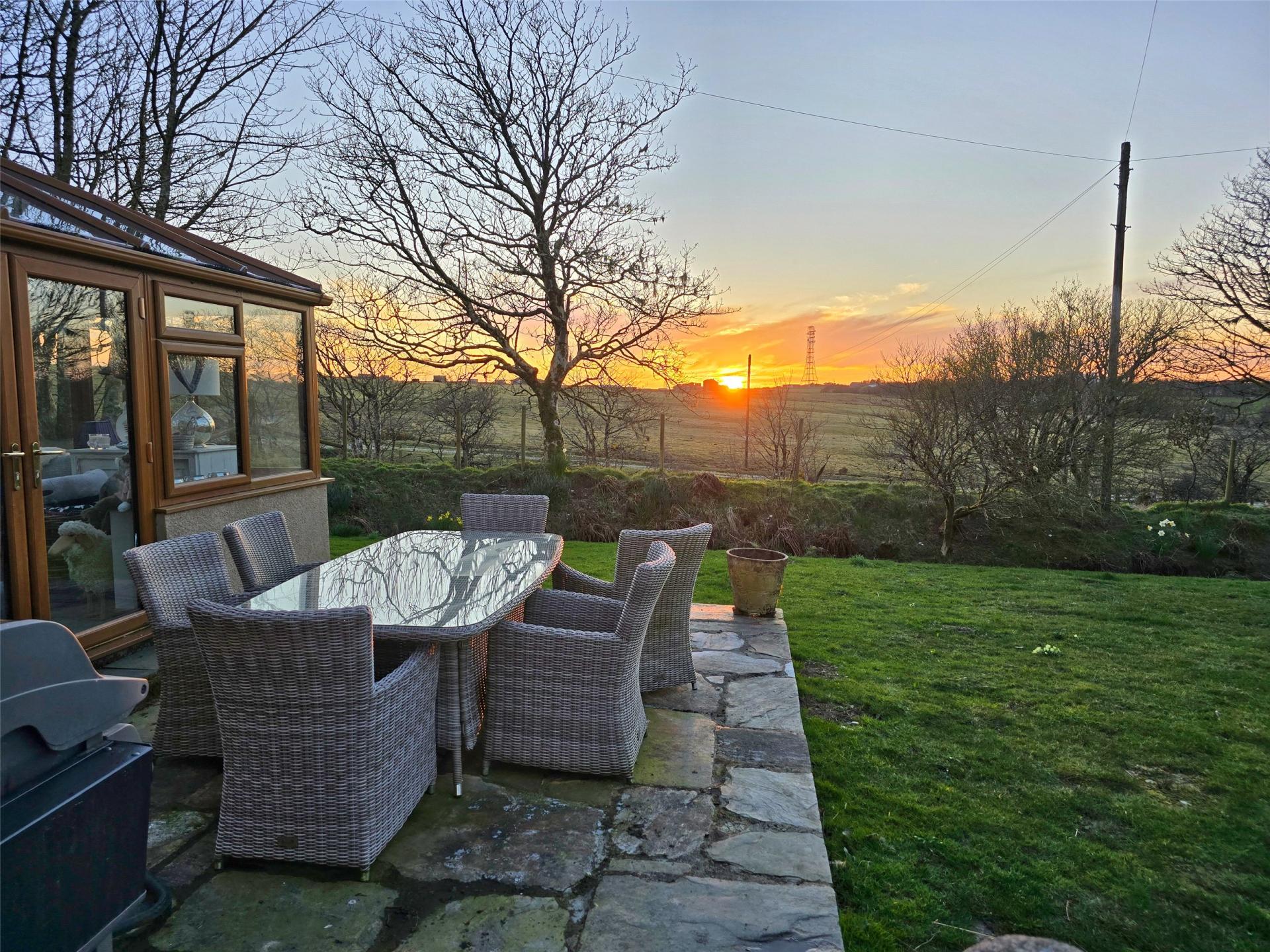 Butterwell is at the end of a long track and approached via a long, private, gated gravel drive, providing ample parking and turning space for multiple vehicles. The surrounding gardens are beautifully landscaped, featuring several lawned areas and an abundance of shrubs and bushes. The south west facing terrace outside the conservatory is the perfect spot for relaxation, dining, or enjoying a BBQ while taking in the stunning views.