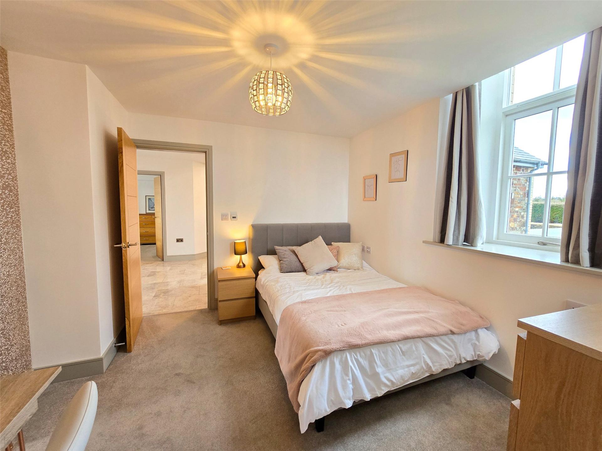 The master bedroom suite, located on the first floor, features both a fitted double wardrobe and a walk-in wardrobe with built-in storage. The en-suite shower room is fully tiled and includes a digital mains shower unit.