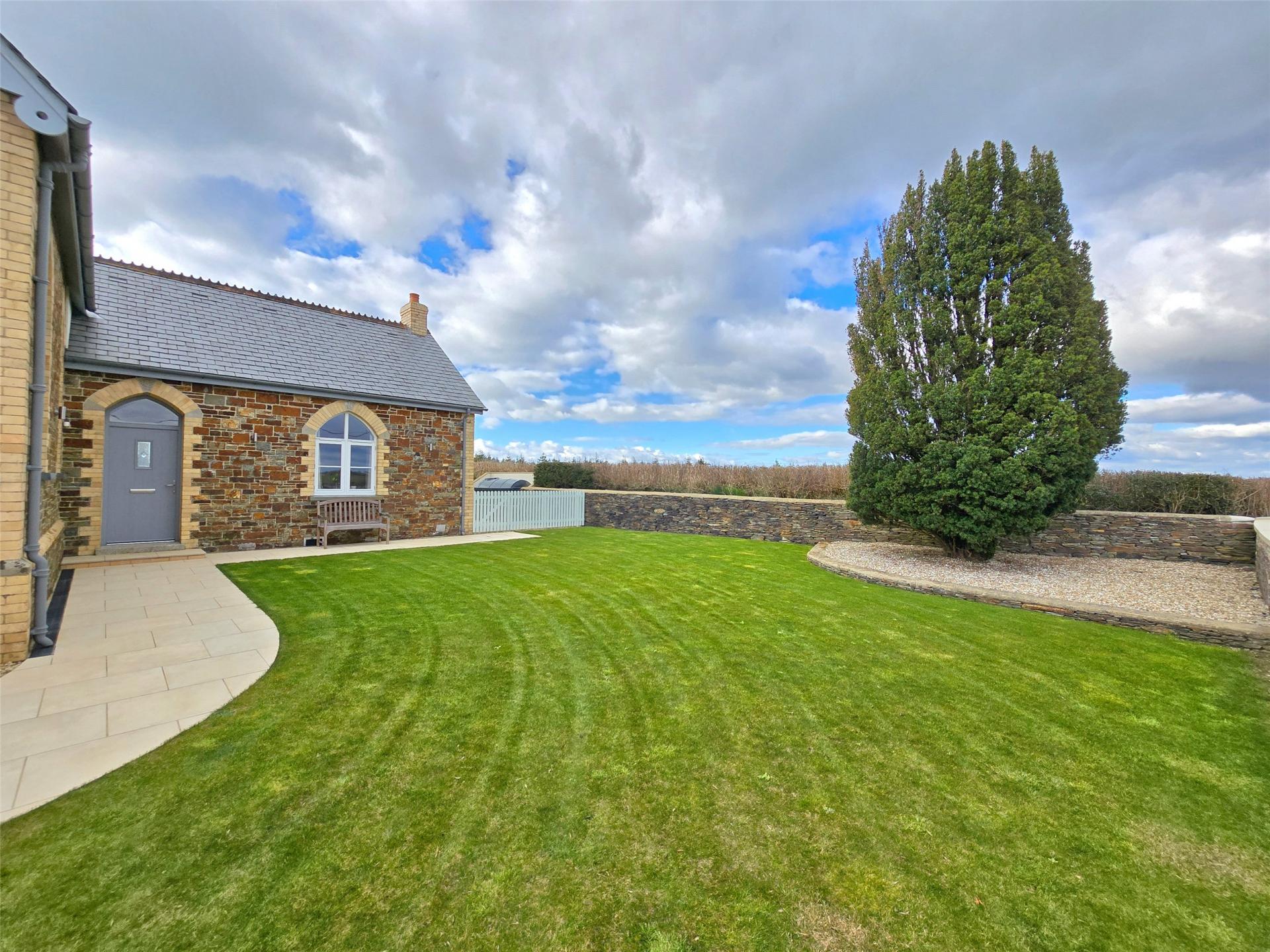 The property sits on a well defined plot with a smooth driveway offering ample off road parking and turning space for multiple vehicles. The detached double garage features two electric up and over doors, providing space for two large cars as well as a separate workshop area, making it perfect for classic car enthusiasts, cyclists, or those with motorbikes. The grounds surround the chapel, featuring lawns, a paved area, and composite decked seating spaces. Attractive walls with inset lighting and flower beds enhance the garden’s appeal. The level grounds back onto miles of open farmland, offering both privacy and stunning views.