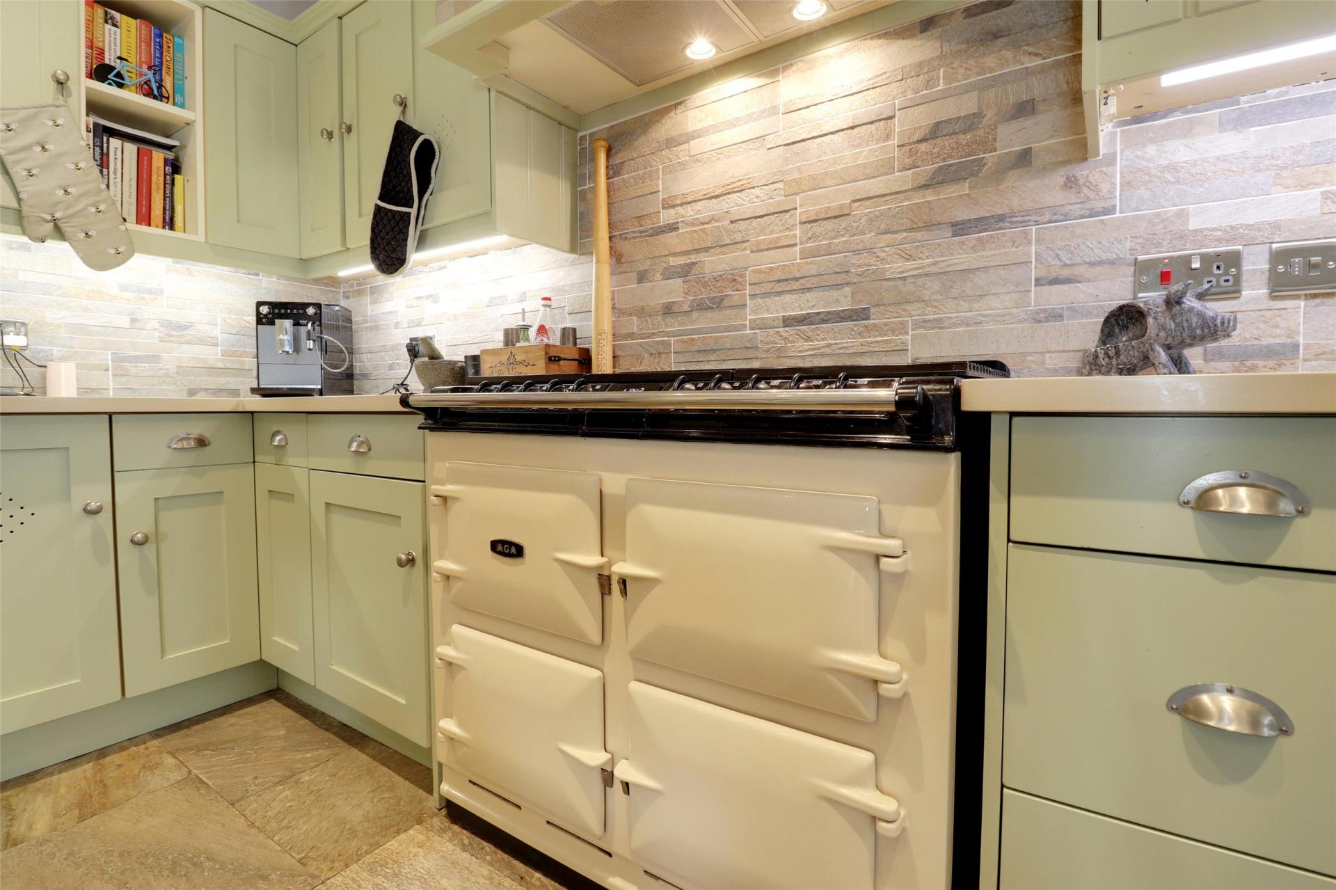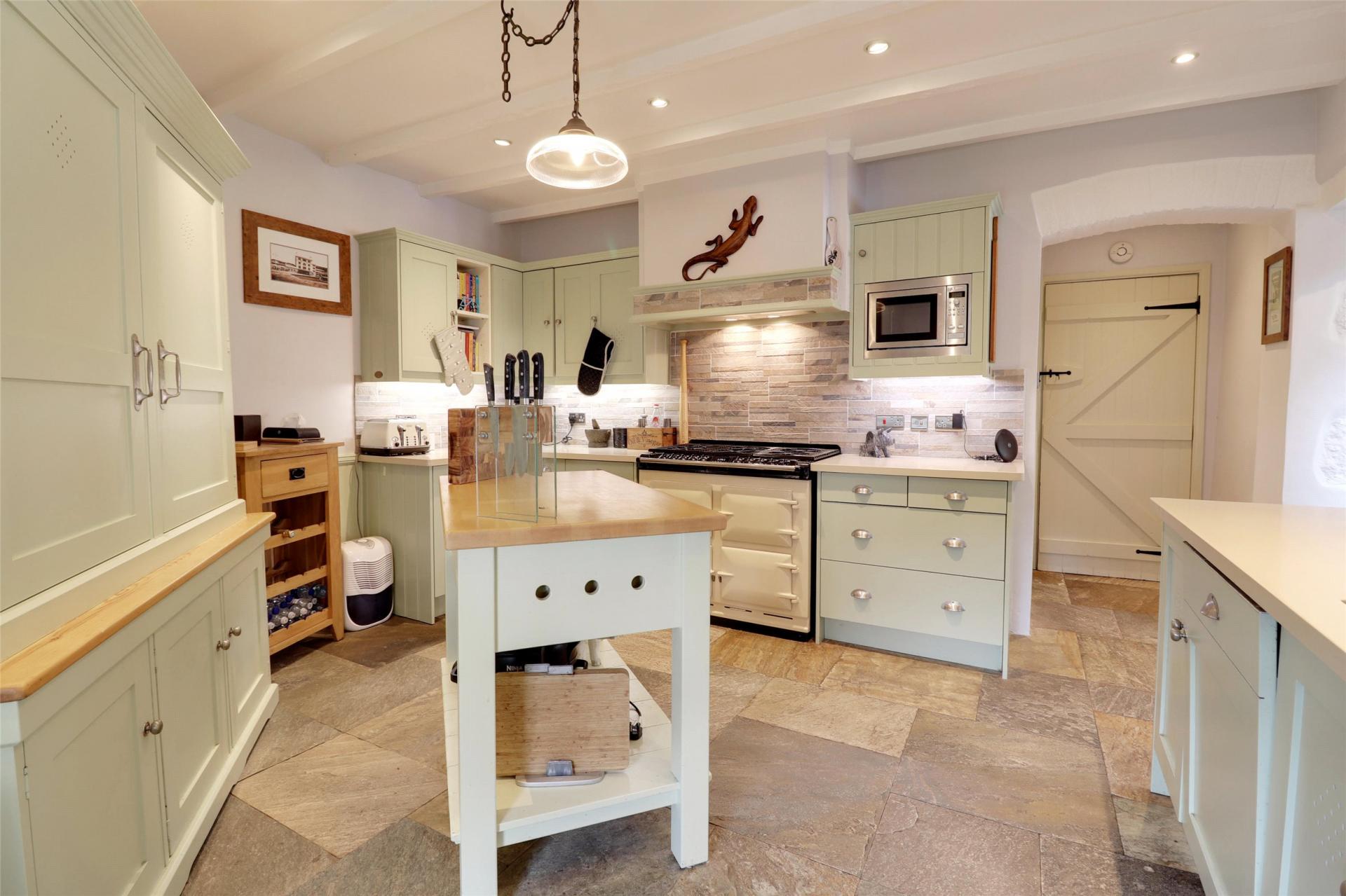 The accommodation is accessed via a large welcoming reception hallway which has a convenient ground floor WC at the side. The reception space throughout the home is significant and flexible and features a triple aspect lounge having a feature floor to ceiling fireplace comprising of a wooden lintel, stone surround and slated hearth, inset is a multi fuel log burner. The lounge has double doors to the garden and the attractive stone and wooden turning stairs which ascend to the first floor. The hallway leads through to the kitchen and utility room and is part open to the separate formal dining space which has a tiled floor and brick wall, this area could be used as a home office if required. The kitchen is superior and fitted with a premium range of units including wall and base cupboards, and replaced Corian worktops and tiled splashbacks. The sink unit has ornate taps including an expandable spray tap. Included in the sale is an Aga dual fuel range oven with extractor above, and Neff dishwasher. The kitchen has recessed downlighters and two of the free-standing larder cupboards will also remain as part of the sale. The utility room has a further range of units, Belfast style sink and the room houses the LPG central heating boiler.