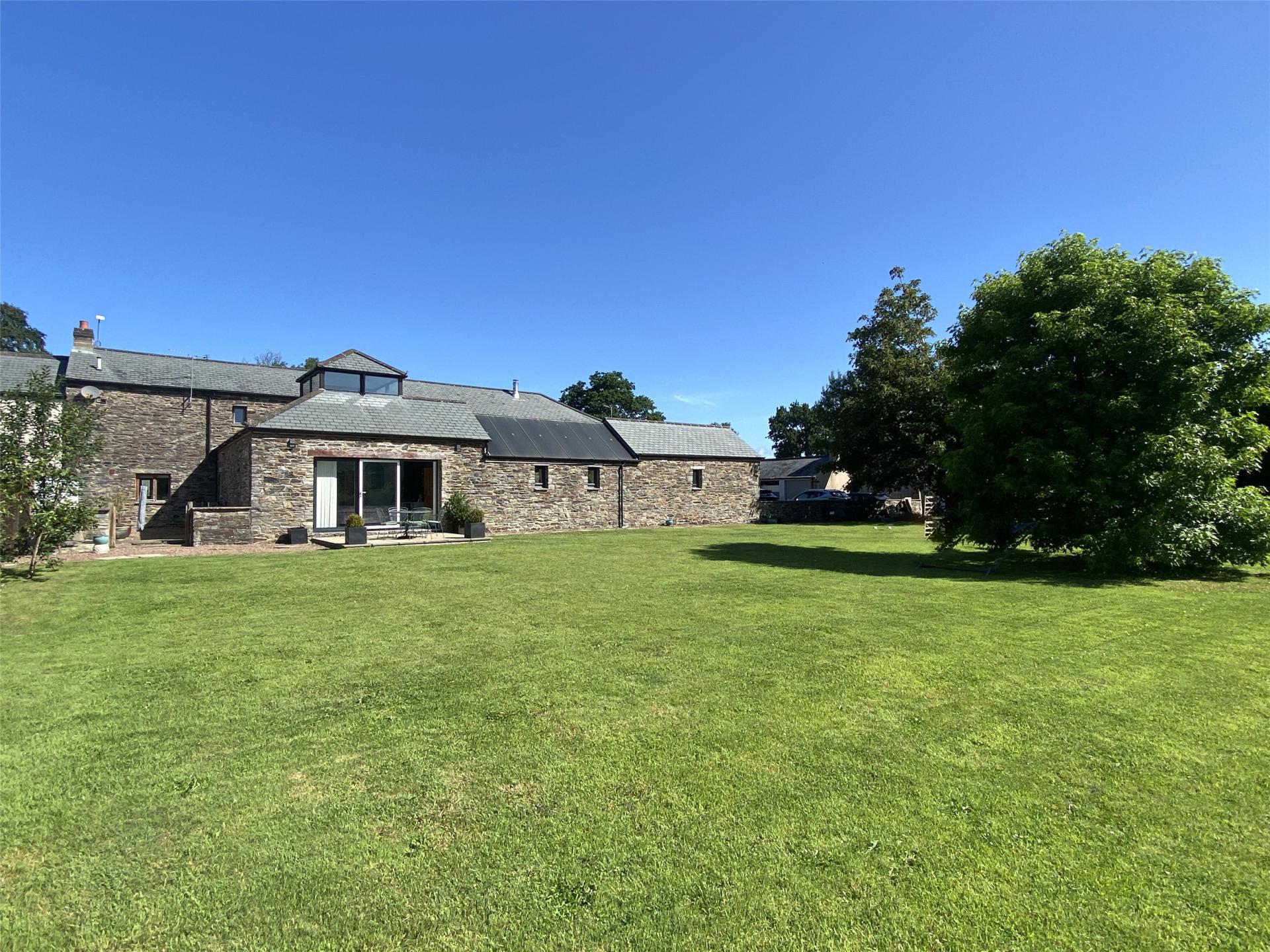 A substantial attached barn with five bedrooms, double garage and a large enclosed south facing level garden with views over the Carey Valley. The property is ideally suited for multi-generational families or those who work from home. EPC rating C.