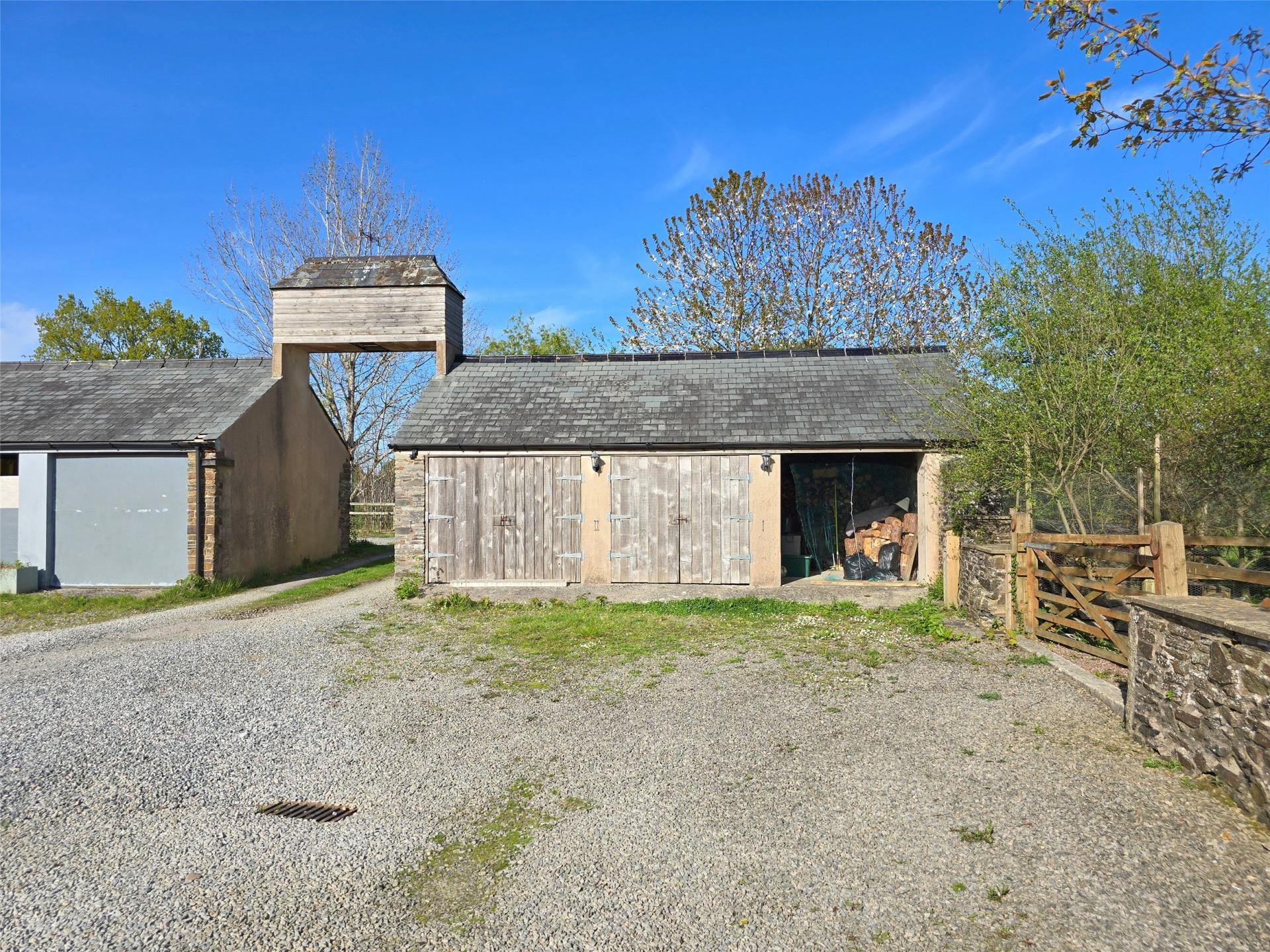 The property is approached via a private and shared lane that leads to the gravelled courtyard area where there is parking and turning for many vehicles. A detached outbuilding incorporates a double garage with double doors, power and light. There is an adjacent open wood store which could be enclosed. Two wrought iron pedestrian gates access the inner courtyard with its attractive stone pathway that leads to the front door. There is an electric vehicle point. From the main courtyard a five bar gate opens into the gardens which are level and found at the rear. On the southerly side they receive the best of the sun and there are far reaching views over the Carey Valley and the surrounding countryside. On the far-right hand side Launceston town can be found in the distance. The garden is well enclosed and mainly lawned with a gravelled path leading to the patio. At the side there is a further patio area which is sheltered and paved being perfect for barbequing. There is clothes drying space and outside power connected.