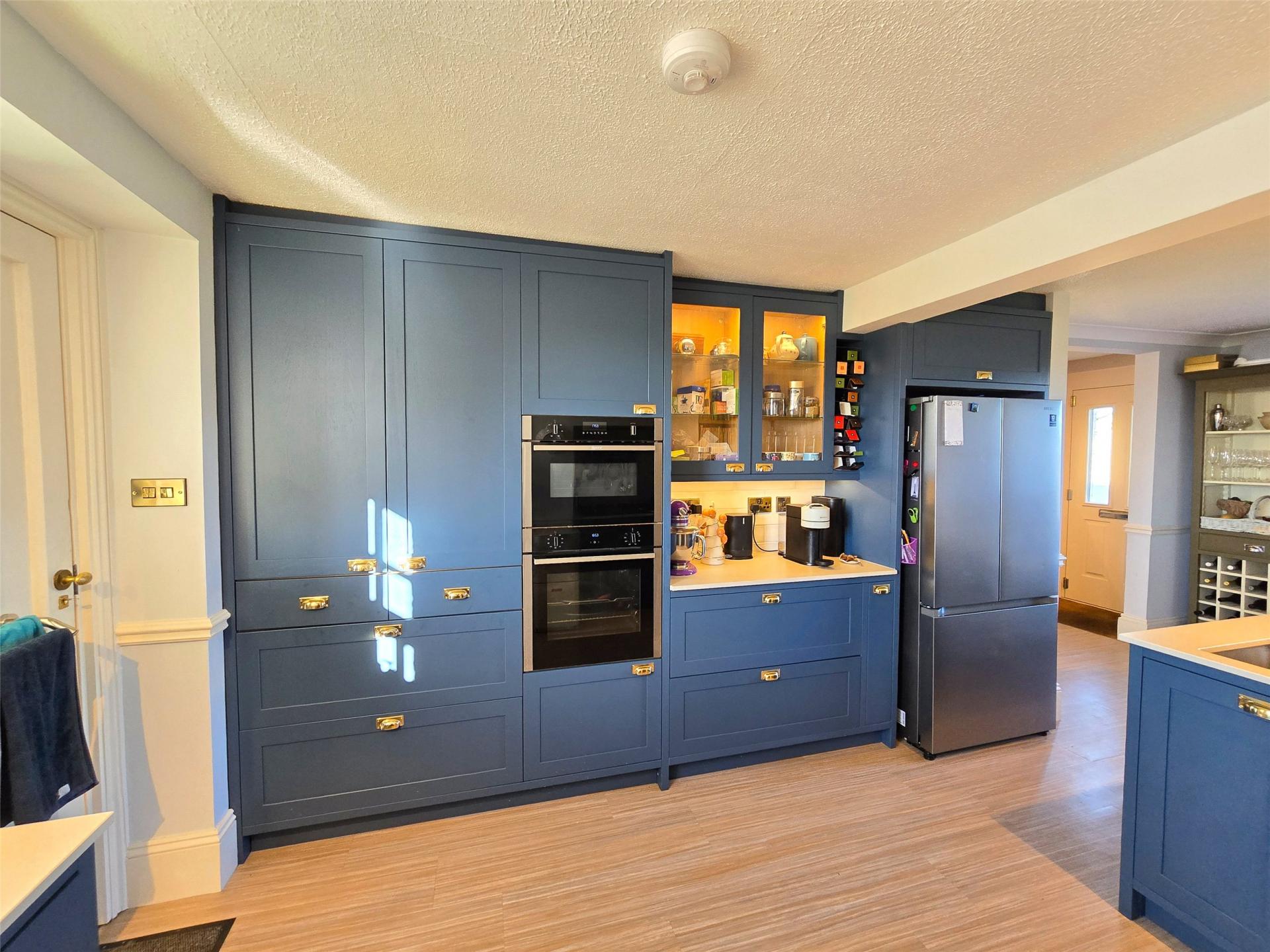 Upstairs, the master suite includes a dedicated dressing area with ample built-in storage. The luxurious en-suite features a large shower and high end sanitaryware. Three of the remaining four bedrooms are large enough to accommodate double beds. The family bathroom is equally impressive with a walk in shower and a freestanding roll top bath.