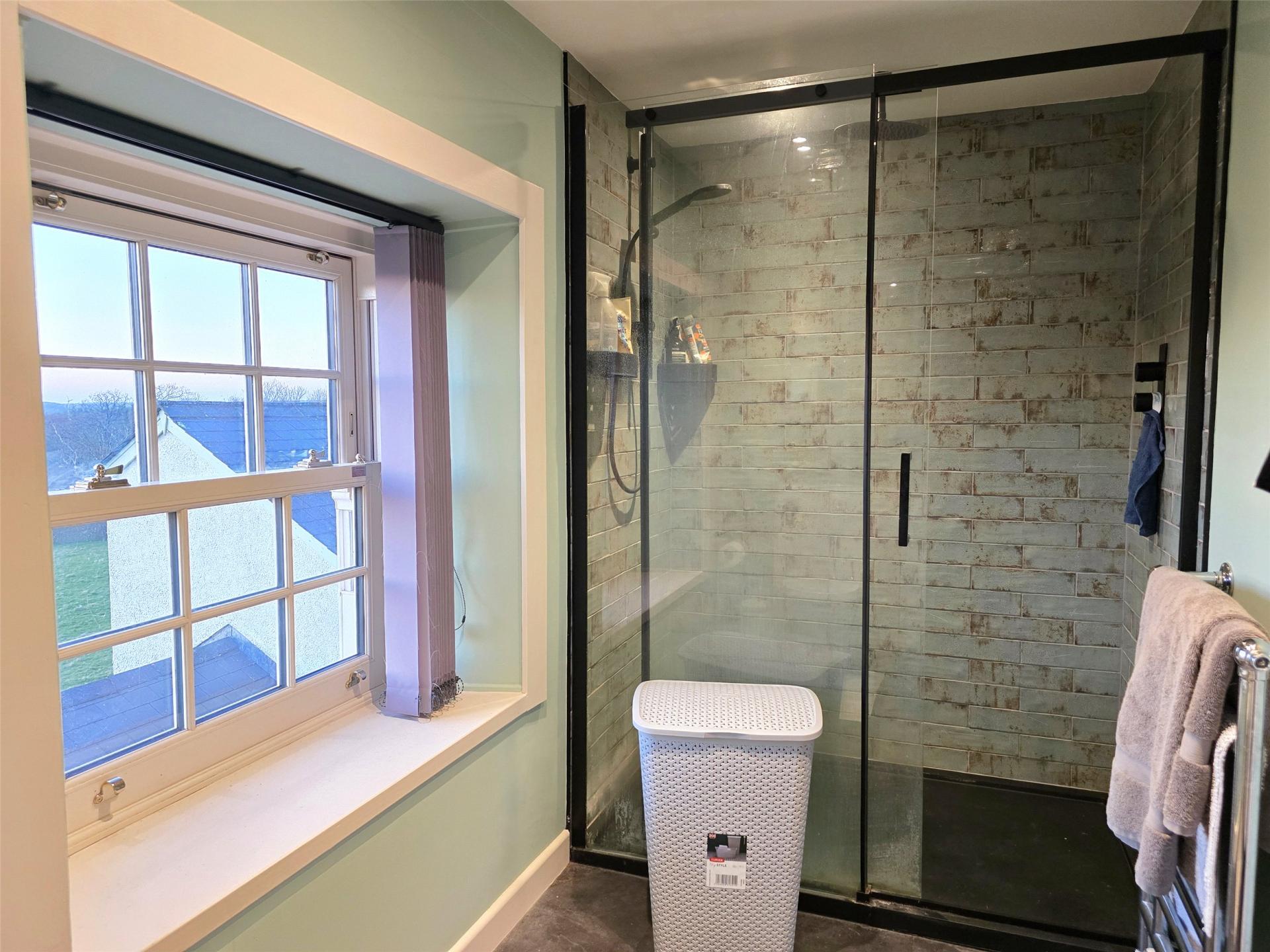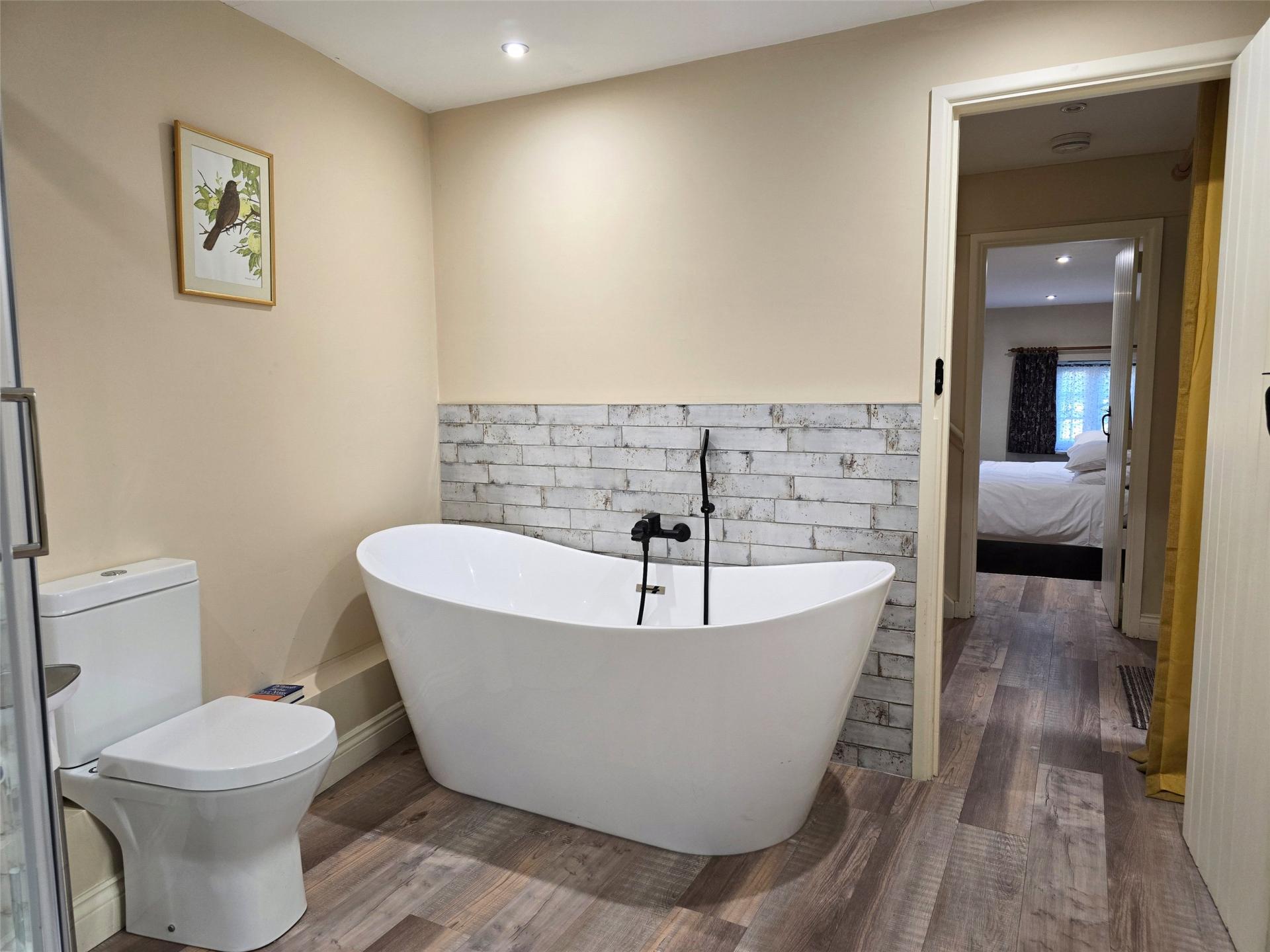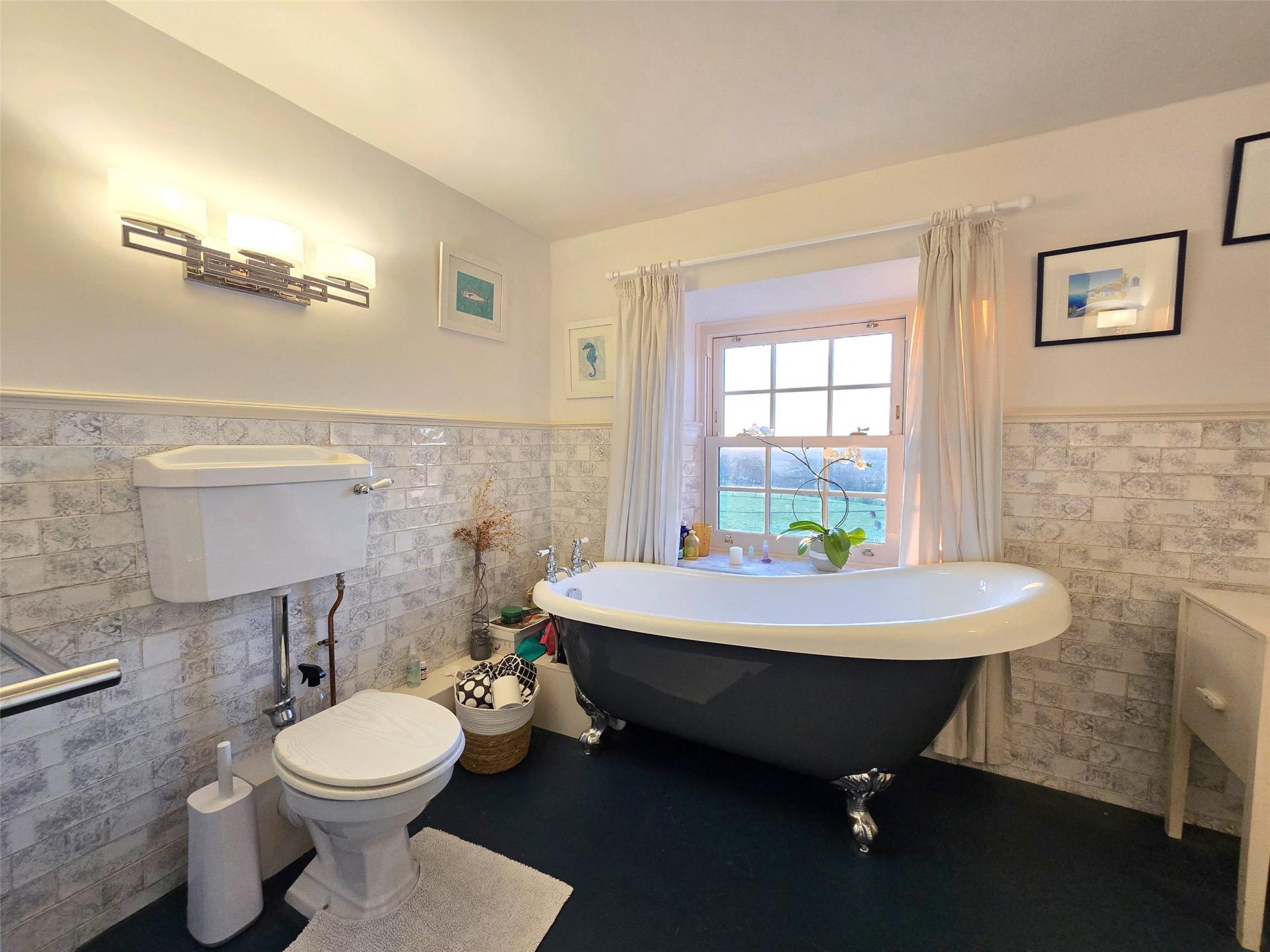 Langham Cottage, the detached one bedroom holiday let, has been completely renovated and offers a private space ideal for guests or rental income. The first floor features a split level, open plan lounge/kitchen/dining room with a multi fuel burner and double doors leading to a balcony with scenic views. The kitchen is fully equipped, and the ground floor includes a double bedroom, a large bathroom with a double shower cubicle, and a freestanding bath. The cottage has electric heating, both underfloor and via panel heaters.
