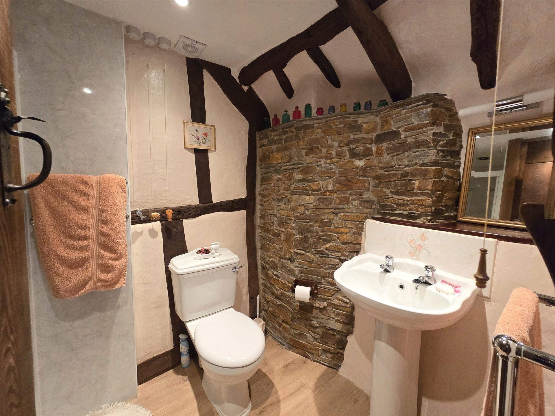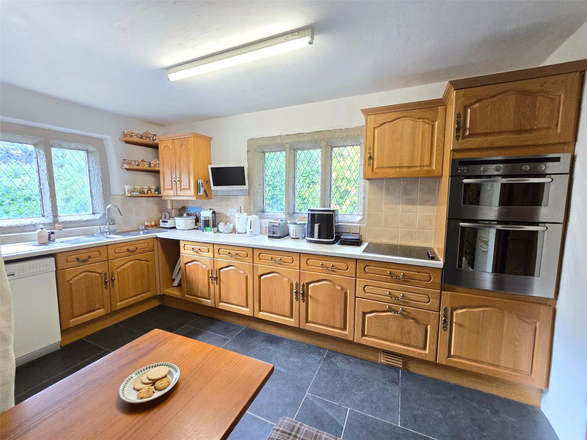 Also, on the ground floor and suitable for home working is a study, the original slate surfaced pantry, and a kitchen with dual aspect windows and two stable doors - one leading to a separate utility/boot room where the Grant oil fired central heating boiler is located. The original ‘Well Room’ retains a still functioning indoor well and offers access to the rear garden and the flight of outbuildings.