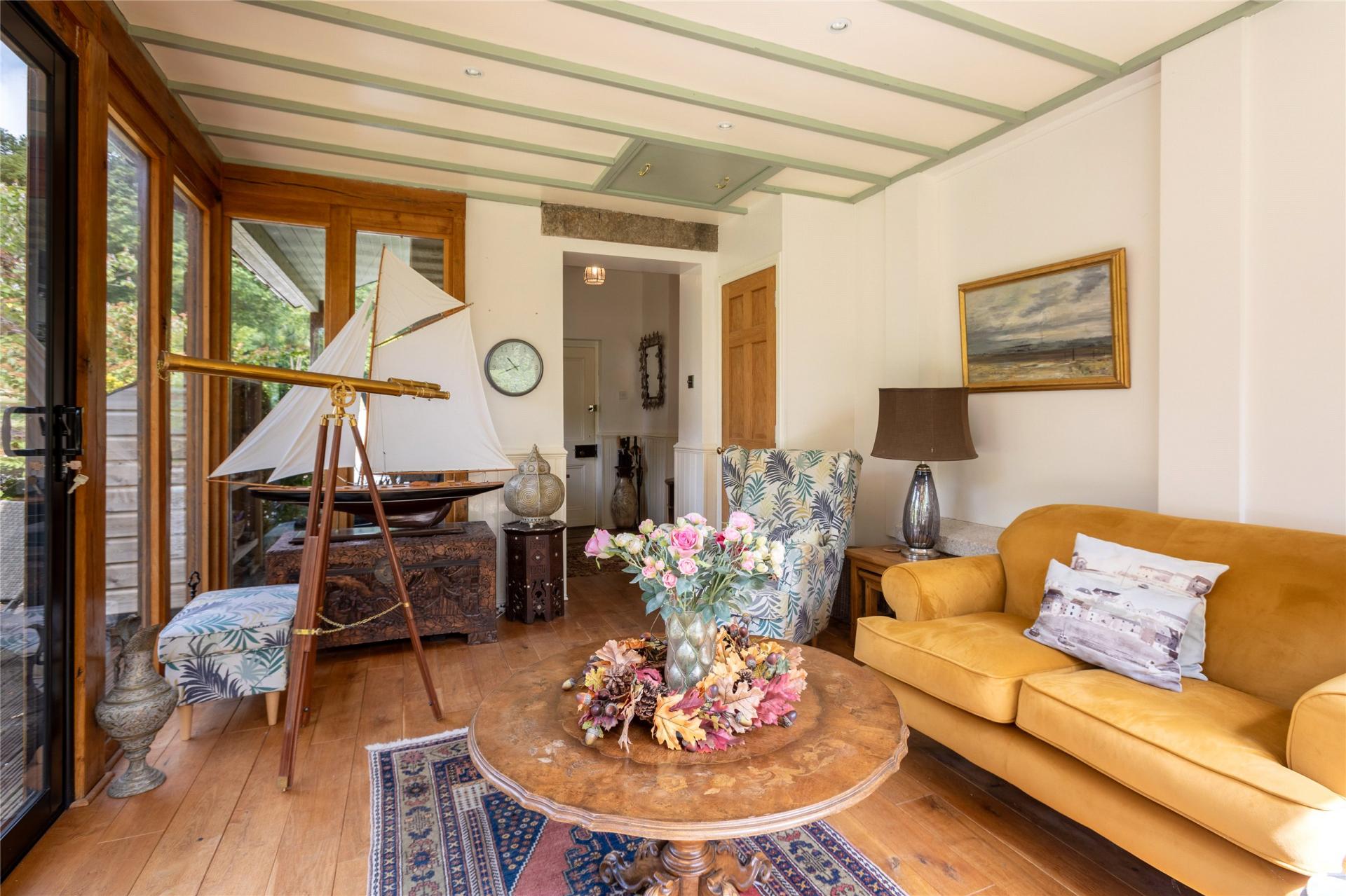 At the top of the drive lies a partly walled garden, previously an orchard, complete with two greenhouses and fruit cages, offering a delightful space for gardening enthusiasts. Surrounding the property is the woodland owned by Hawkmoor House. For those who love the outdoors, the house also connects via a private path directly to the Tamar Trails, offering 25 km of historic woodland paths to explore.