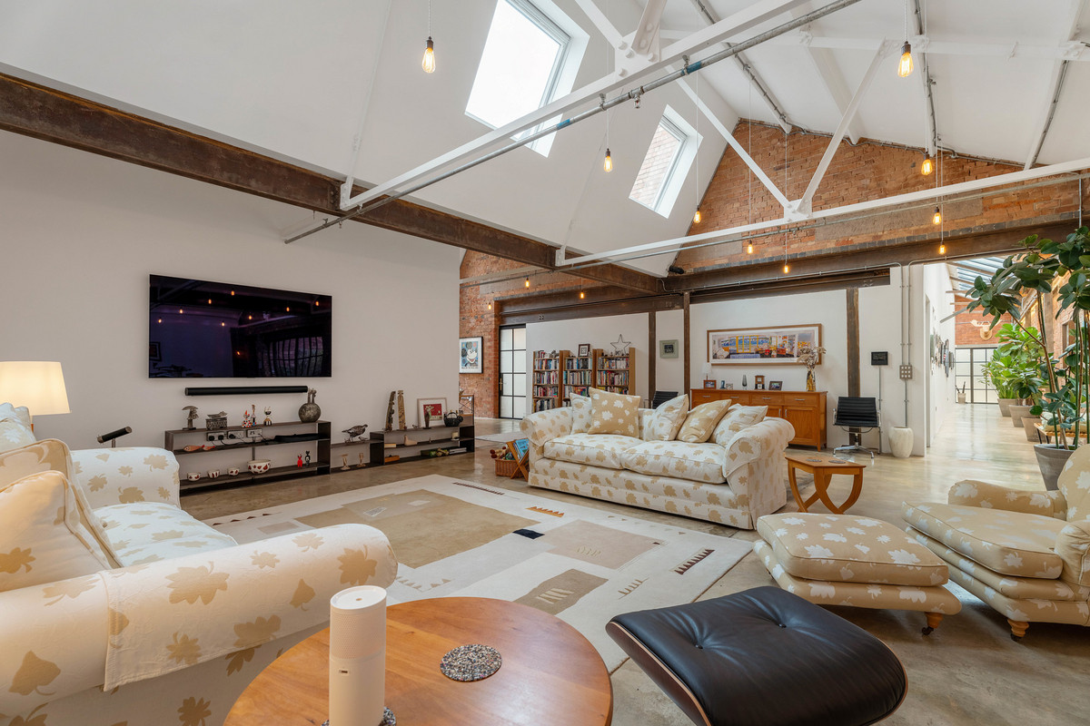 A jaw-dropping 5,100 sq ft loft in central Leamington Spa—originally a Real Tennis court and print works—transformed into a one-of-a-kind industrial-chic home with three double bedrooms, vaulted ceilings, and private outdoor spaces.