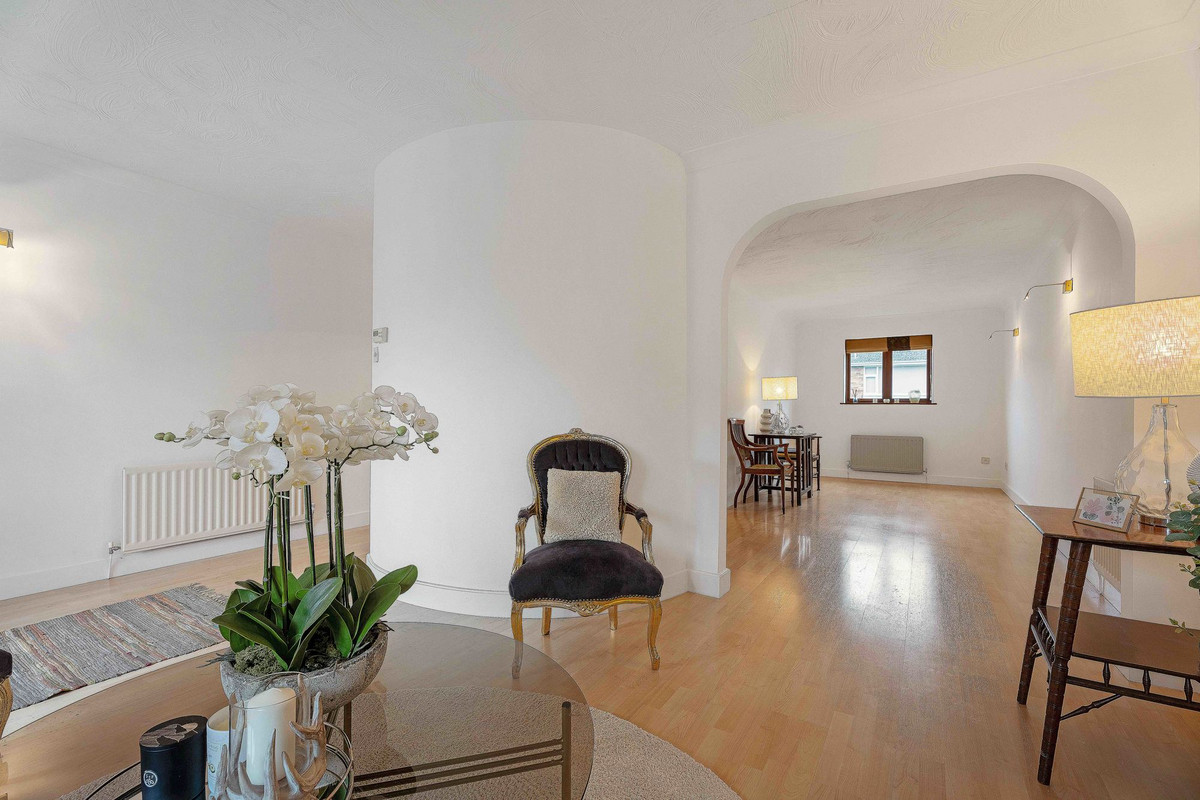 This is a unique link semi-detached property with three bedrooms, two bathrooms, a kitchen, and an open plan living dining room located in the centre of Leamington Spa with a feature spiral staircase, private south-facing balcony, enclosed courtyard garden, integral garage, and allocated parking for two cars.